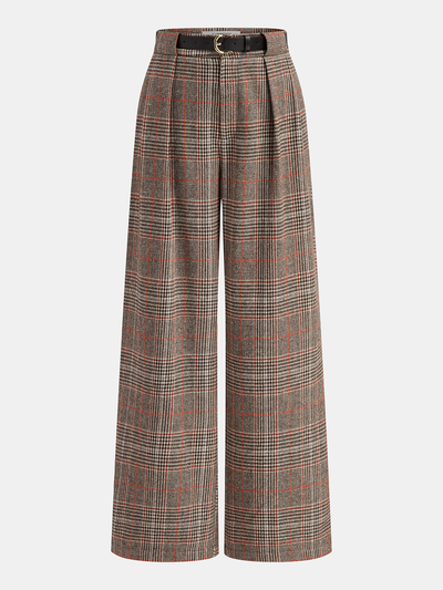 Belted Pinstripe Mid-Waist Wide-Leg Pants