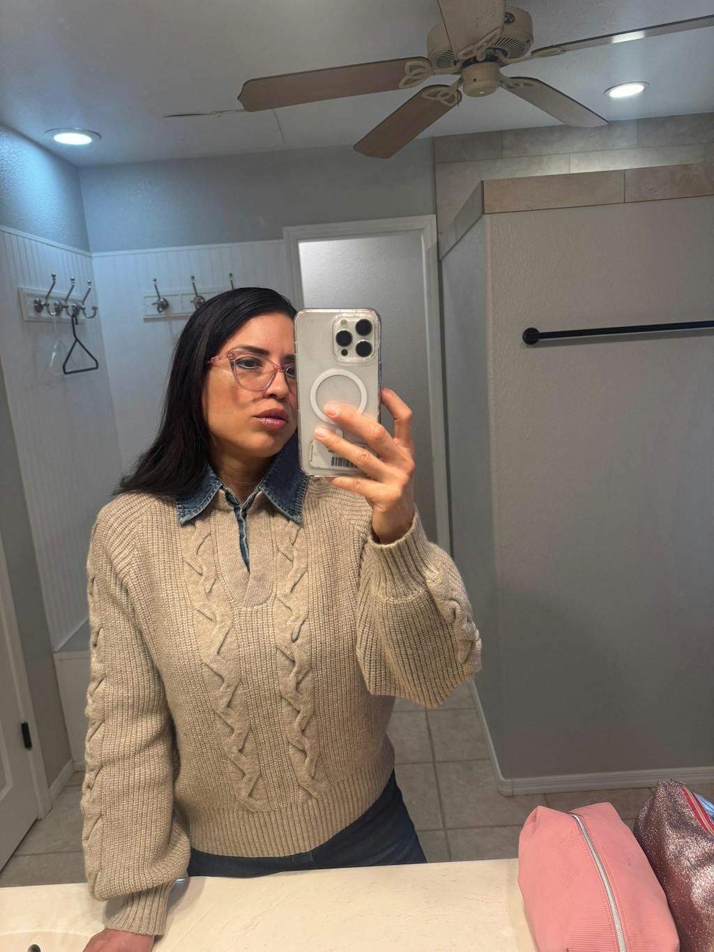 I really am in love with this cozy, sophisticated, yet trendy sweater. This sweater will keep you warm, so make sure you wear it on a nice and chilly winter day. I like the fit, yes, runs a little big but snugs you without it looking baggy on you.