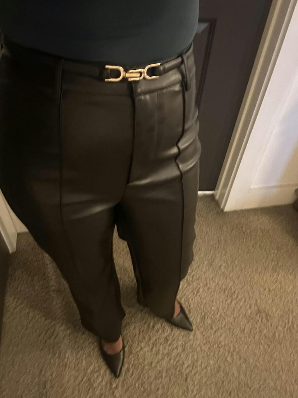 These High Waist Faux Leather Pants exceeded every expectation! The fit is incredibly flattering — the high waist snatches you in perfectly without feeling tight, and the stretch makes them super comfortable for all-day wear. The faux leather looks luxe and high-quality, giving the same elevated look as real leather without the upkeep. If you’re looking for pants that make you feel confident, stylish, and put-together with zero effort, these are a must-have.