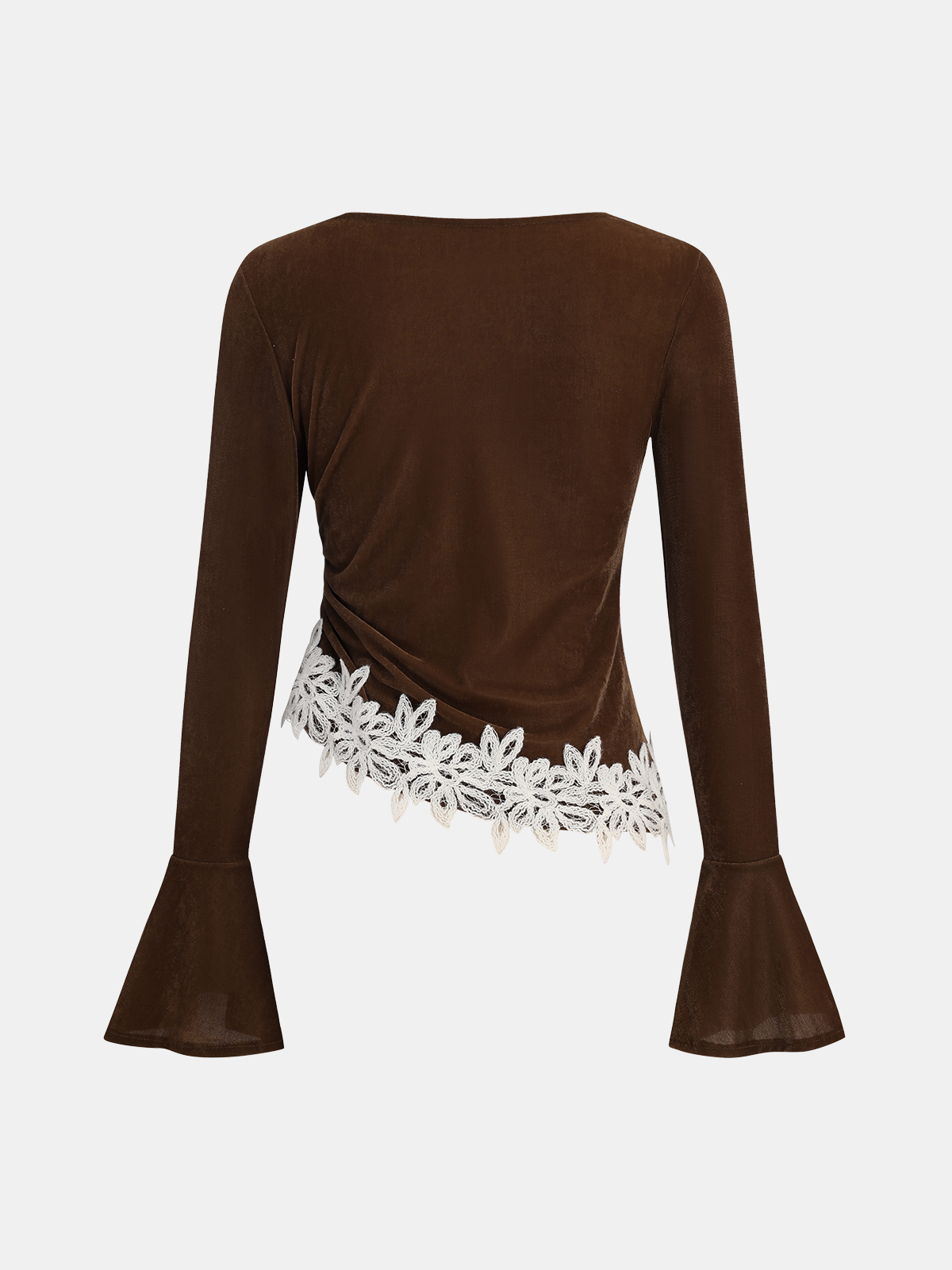 1688 online,a-none,brown,clothing,coll:tops,coll:vintage_fabrics,crew neck,fall,feminine,in_six_month,lace,long sleeve,no,not_low_sales,oa251008028,regular,regular fit,short top,slight stretch,spring,t-shirts,thin,tops,velvet,winter,winter hues,women