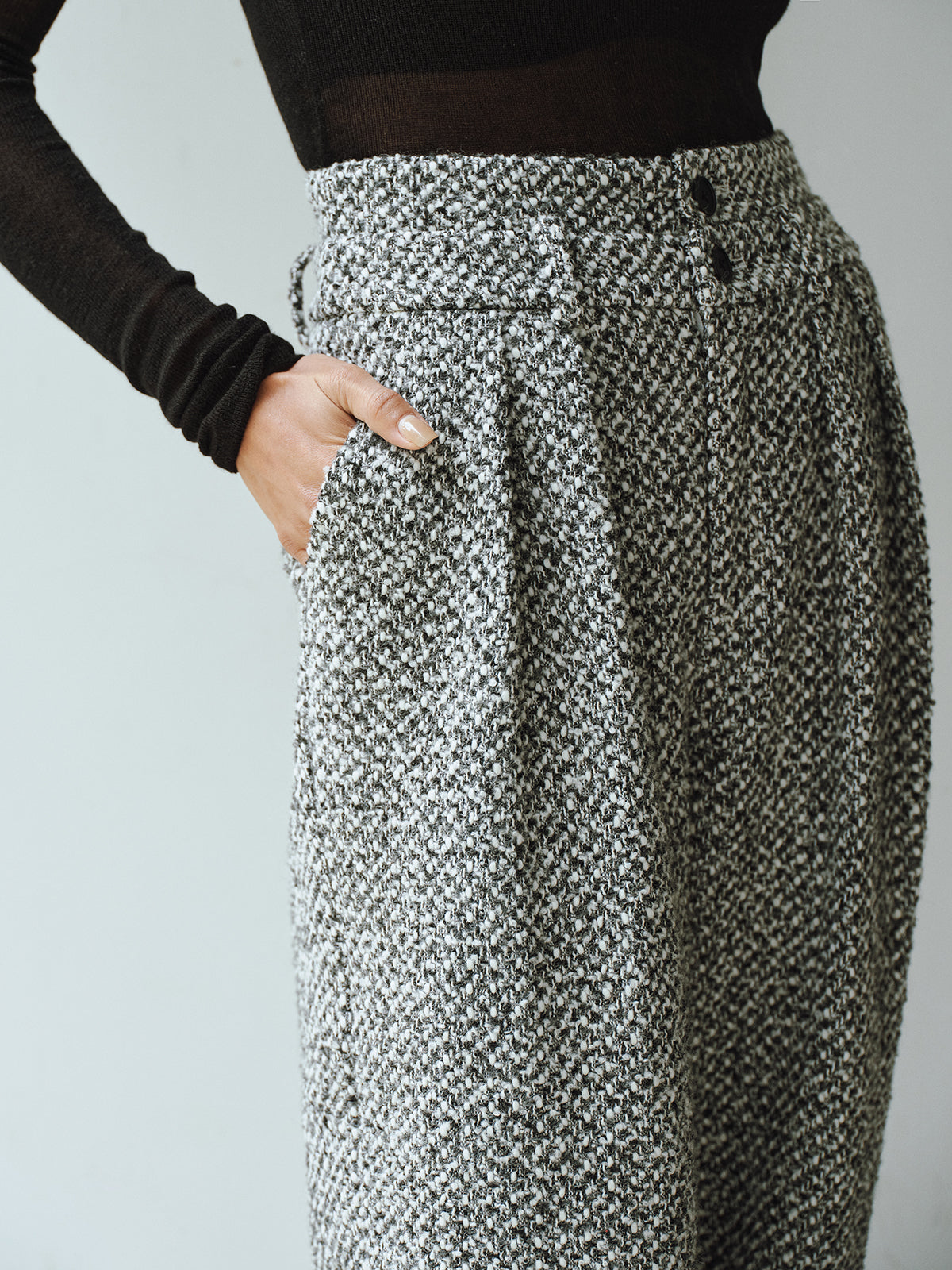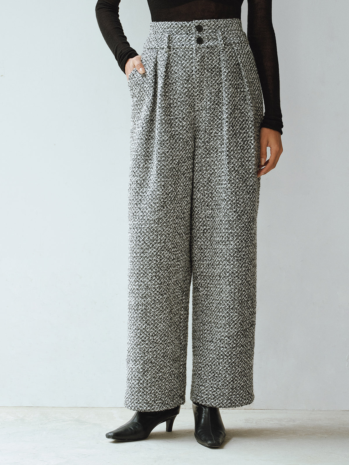 a-none,bottoms,casual,clothing,coll:bottoms,coll:pants,coll:trending,coll:vintage_fabrics,corpcore,fall,grey,in_six_month,inner sample,invisible zipper,long pants,mid waist,minegence,no,not_low_sales,oa250911002,pants,photo_model,regular,regular fit,slight stretch,tweed,warm,winter,women