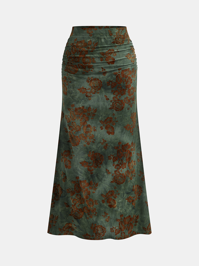 Faux Leather Paneled Suede Effect Asymmetric Midi Skirt
