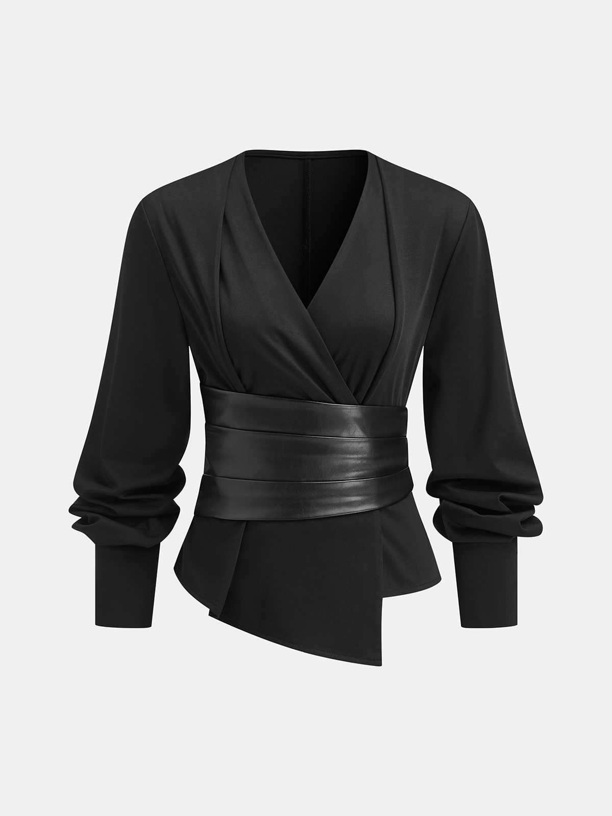 belted,black,casual,cathryn-t,clothing,coll:blouses_shirts,coll:tops,corpcore,fall,in_six_month,long sleeve,medium stretch,minegence,no,not_low_sales,oa250929008,patchwork,regular,regular fit,shirts,tops,v-neck,winter,women,woven fabric