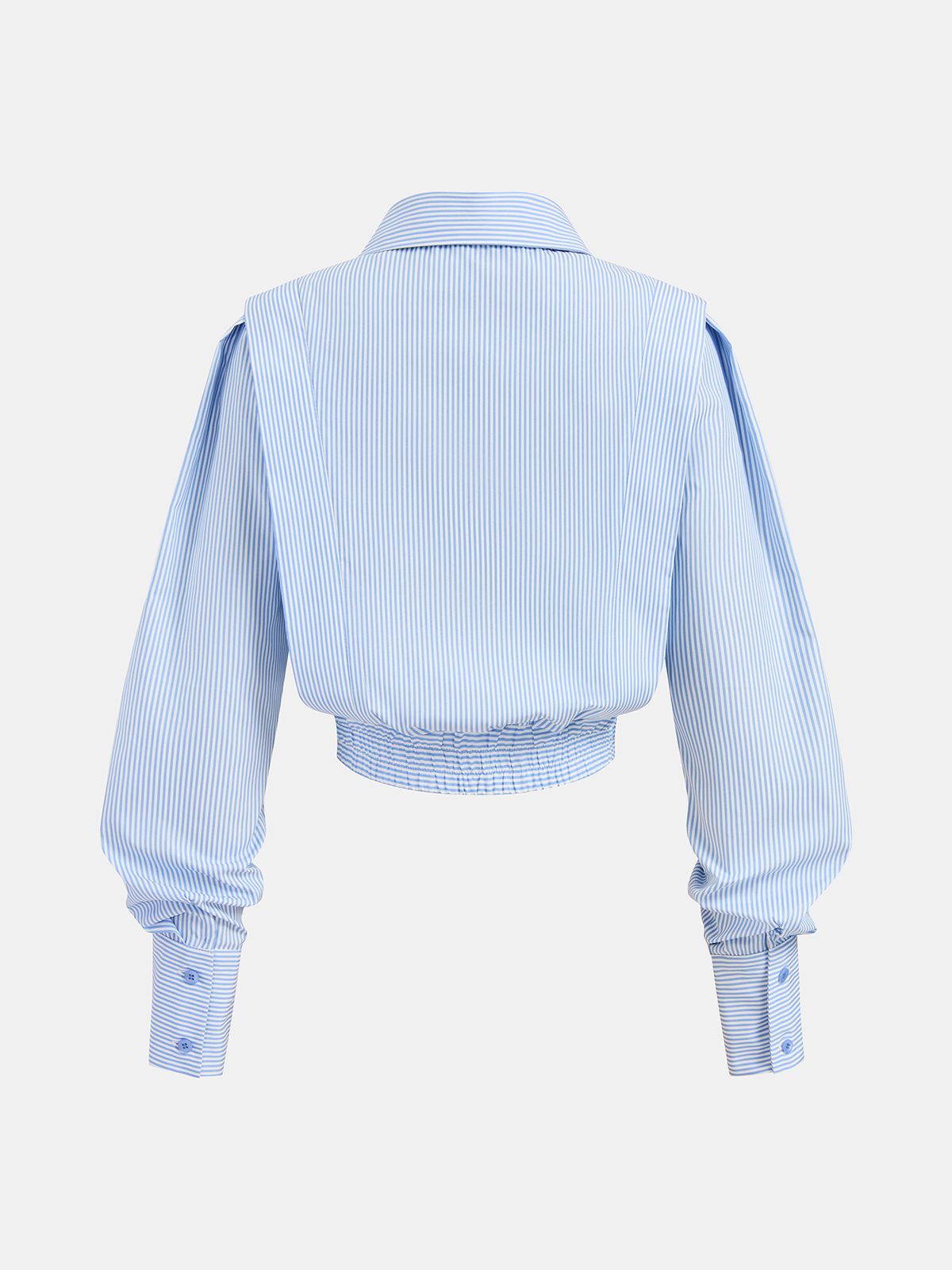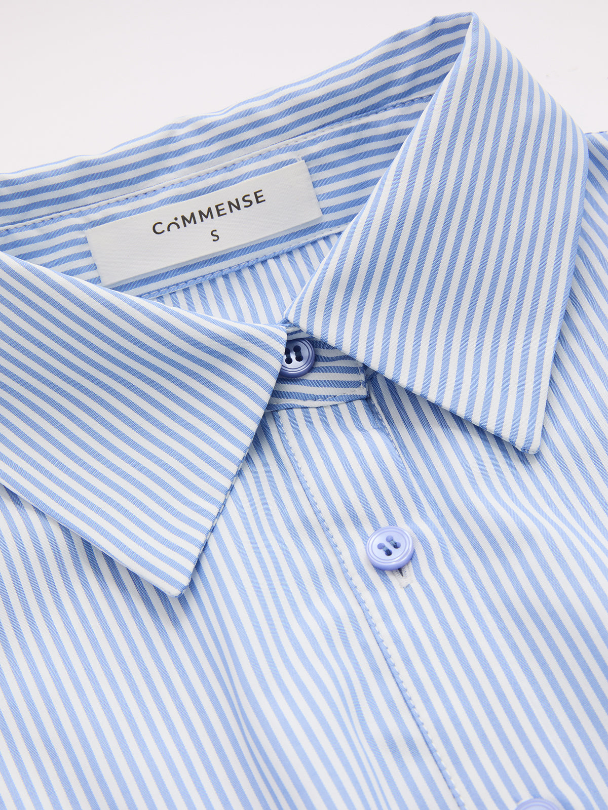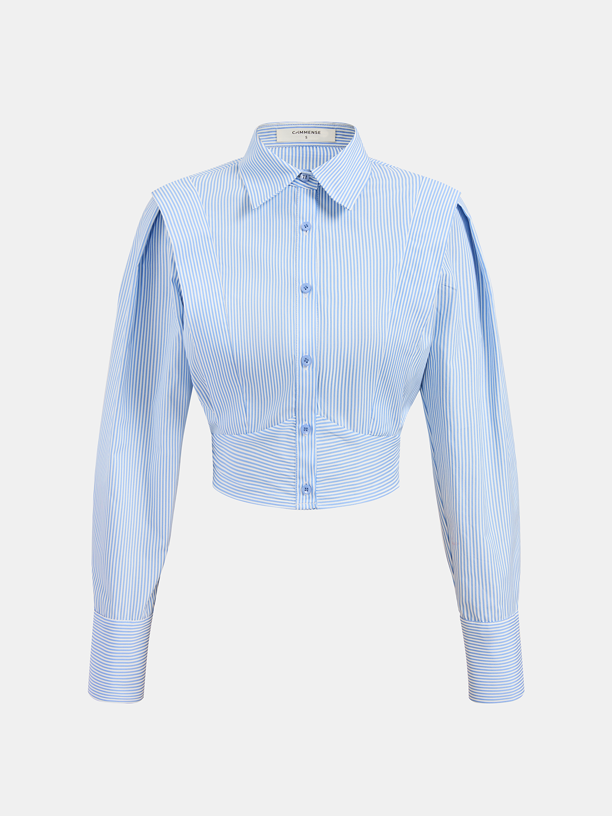 blue,button-down collar,casual,clothing,coll:blouses_shirts,coll:tops,corpcore,in_six_month,long sleeve,minegence,modern minimal,mwt,no,non-stretch,not_low_sales,oa251120073,pleated,regular,regular fit,shirts,stripe,summer hues,tops,women,woven fabric,zyq