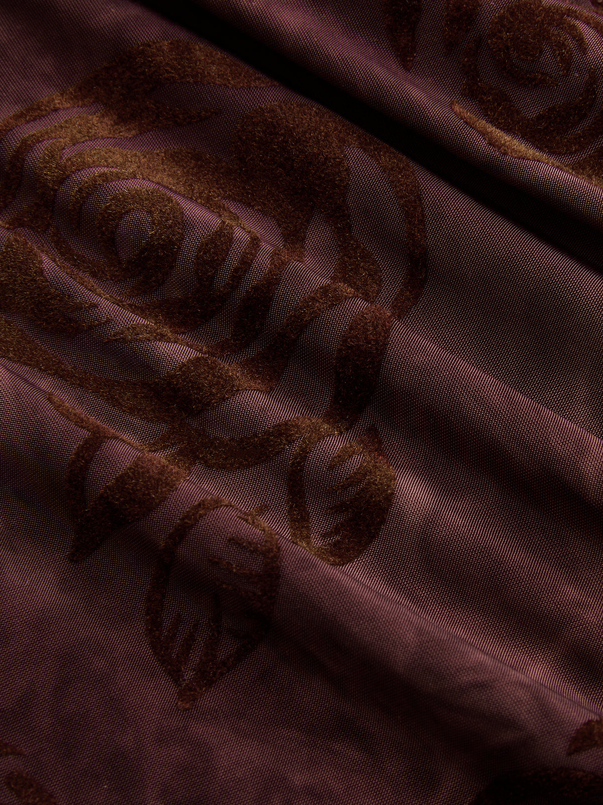 Flocked Rose-Print Ruched Sleeveless Mini Dress