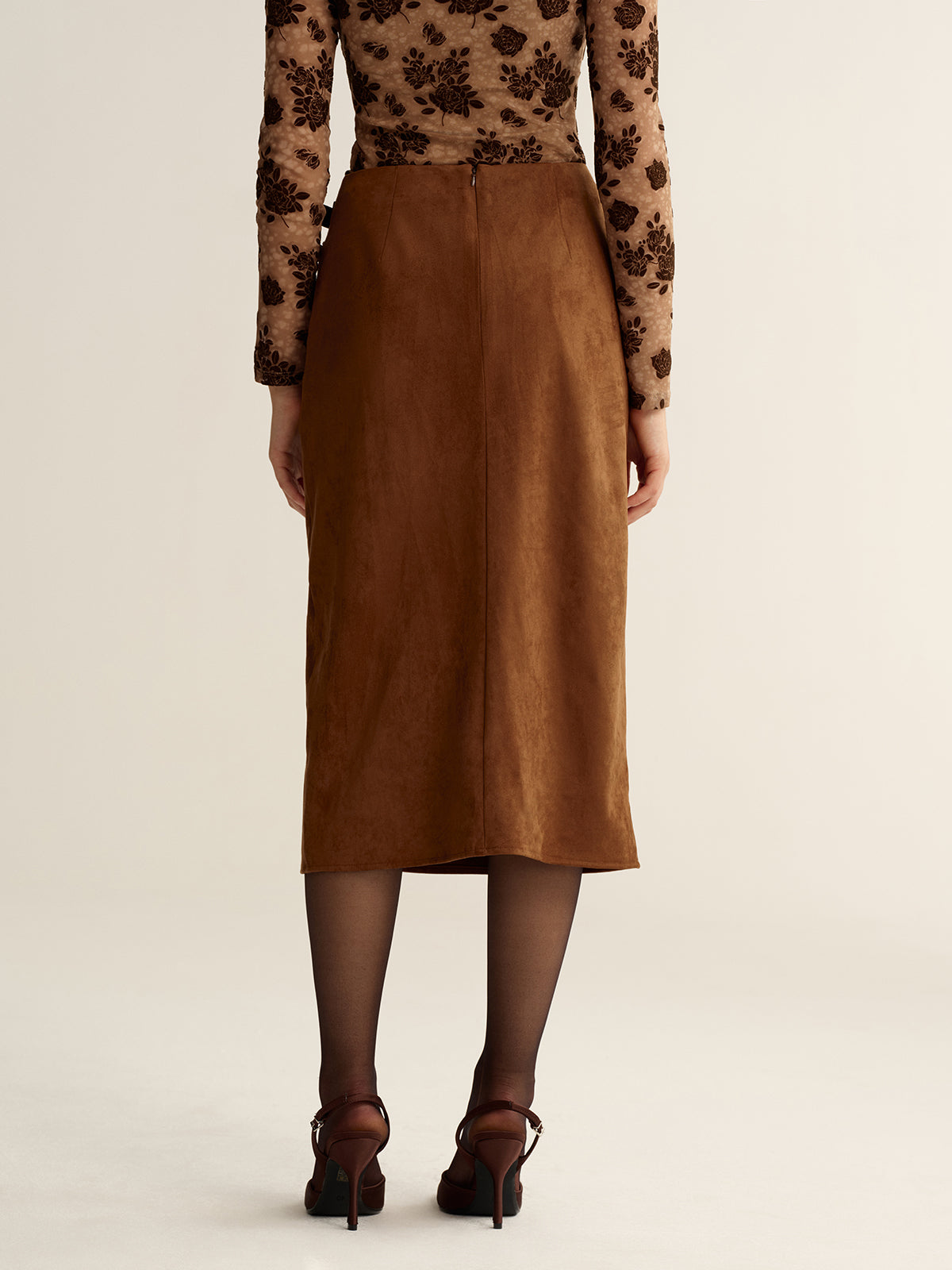 25 christmas,bottoms,cici select,clothing,coll:bottoms,coll:skirts,coll:trending,coll:vintage_fabrics,corpcore,dark brown,date,fall,high waist,in_six_month,inner sample,maxi,metal detail,minegence,no,not_low_sales,oa250828042,photo_model,regular,regular fit,skirts,slight stretch,spring,suede effect,winter,winter hues,women