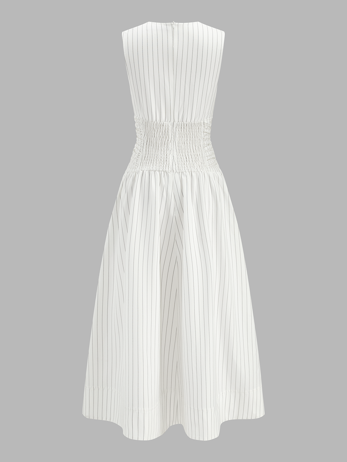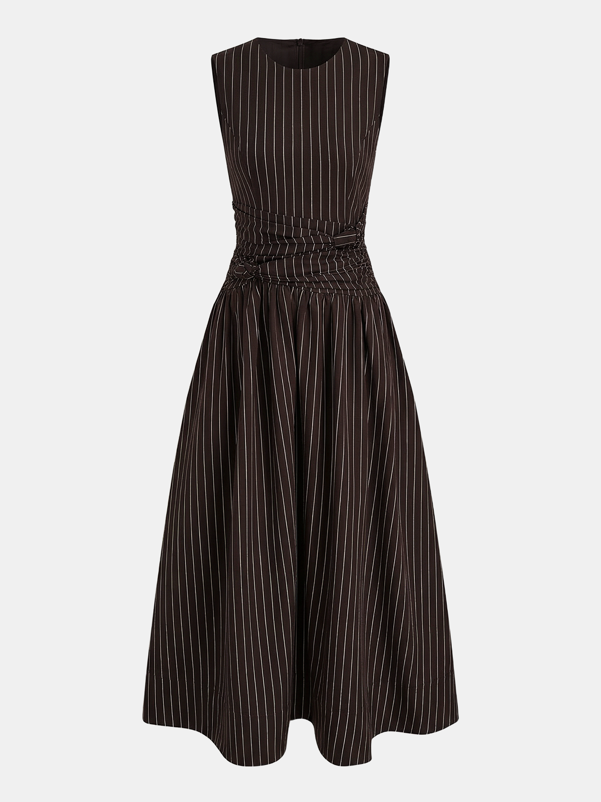 casual,clothing,coll:dresses,coll:linen_cotton,corpcore,cotton blends,crew neck,dark brown,dresses,in_six_month,maxi,minegence,no,not_low_sales,oa260120018,photo_ai,regular,ruched,sleeveless,stripe,umbrella hem,white,women
