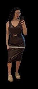 Buttery soft, stretchy and comfortable for moving around and sitting down. True to the measurements on the size chart. I would advise going by the measurements rather than the number size, which varies brand-to-brand. The size M belt measures exactly 30 inches and does not stretch. However, the skirt does. Well constructed and fully lined in soft material. Ignore The weird line going across my photos. It was from my mirror. Love this dress!