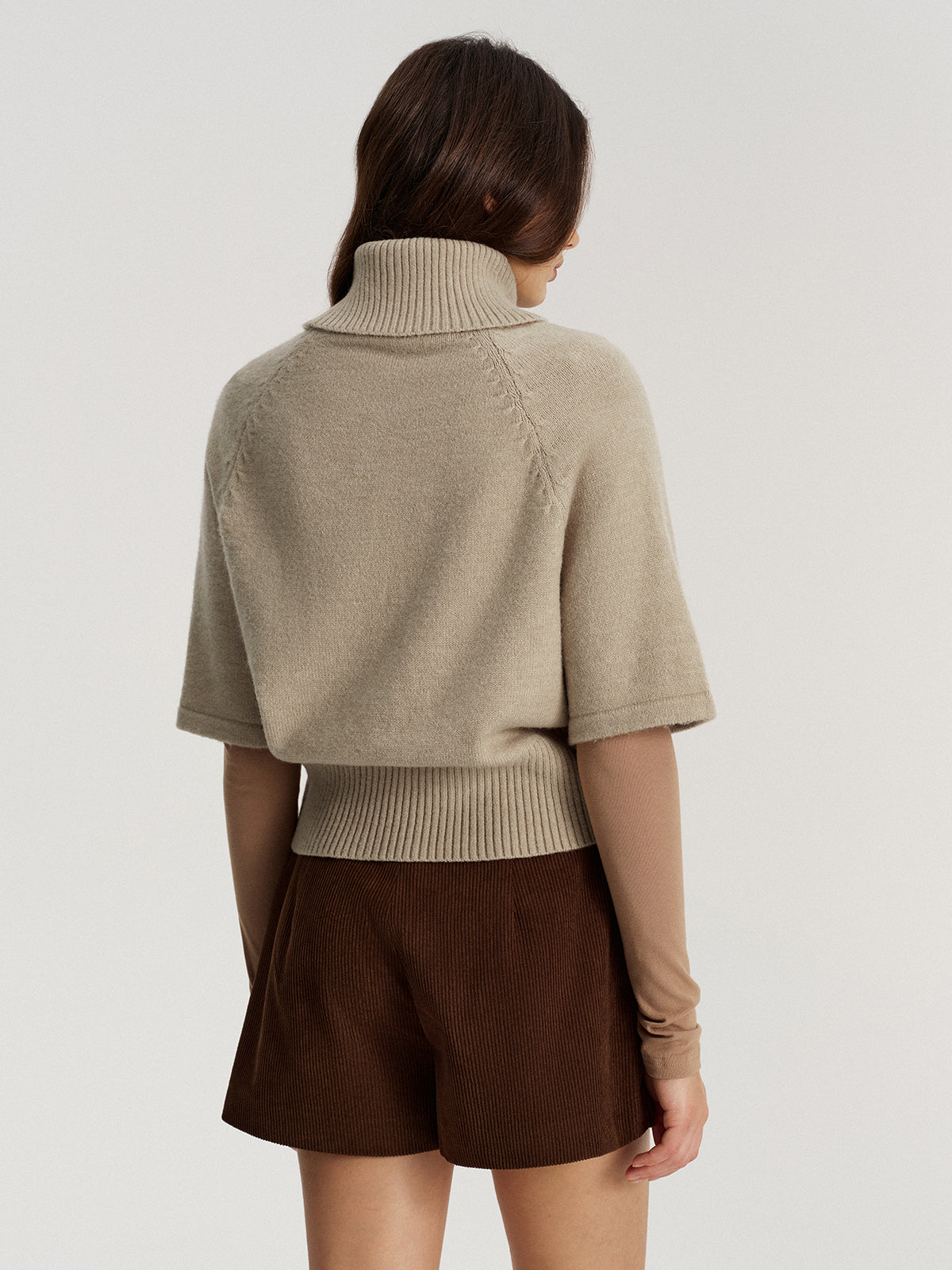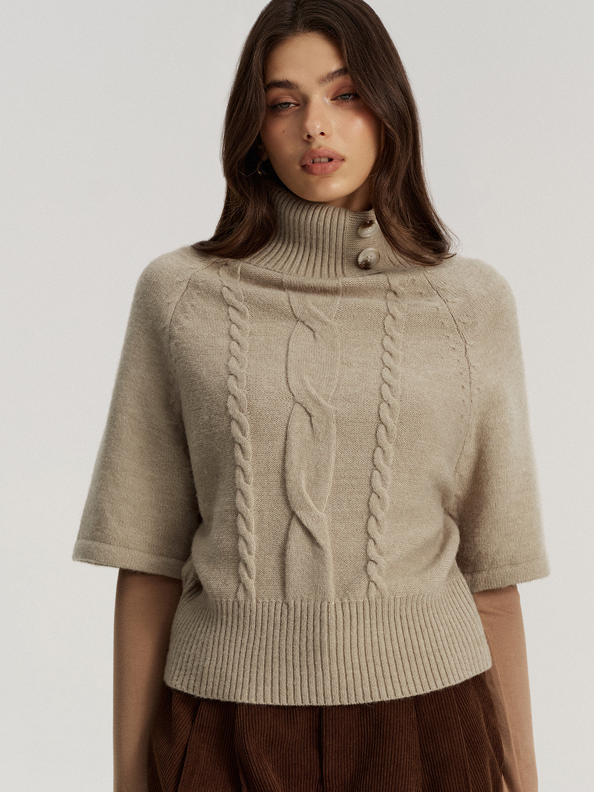 Turtleneck Cable Knit Short Sleeve Sweater without Belt