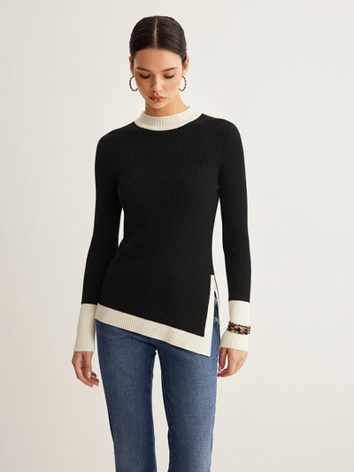 Color-Block Asymmetric Hem Ribbed Knit Top