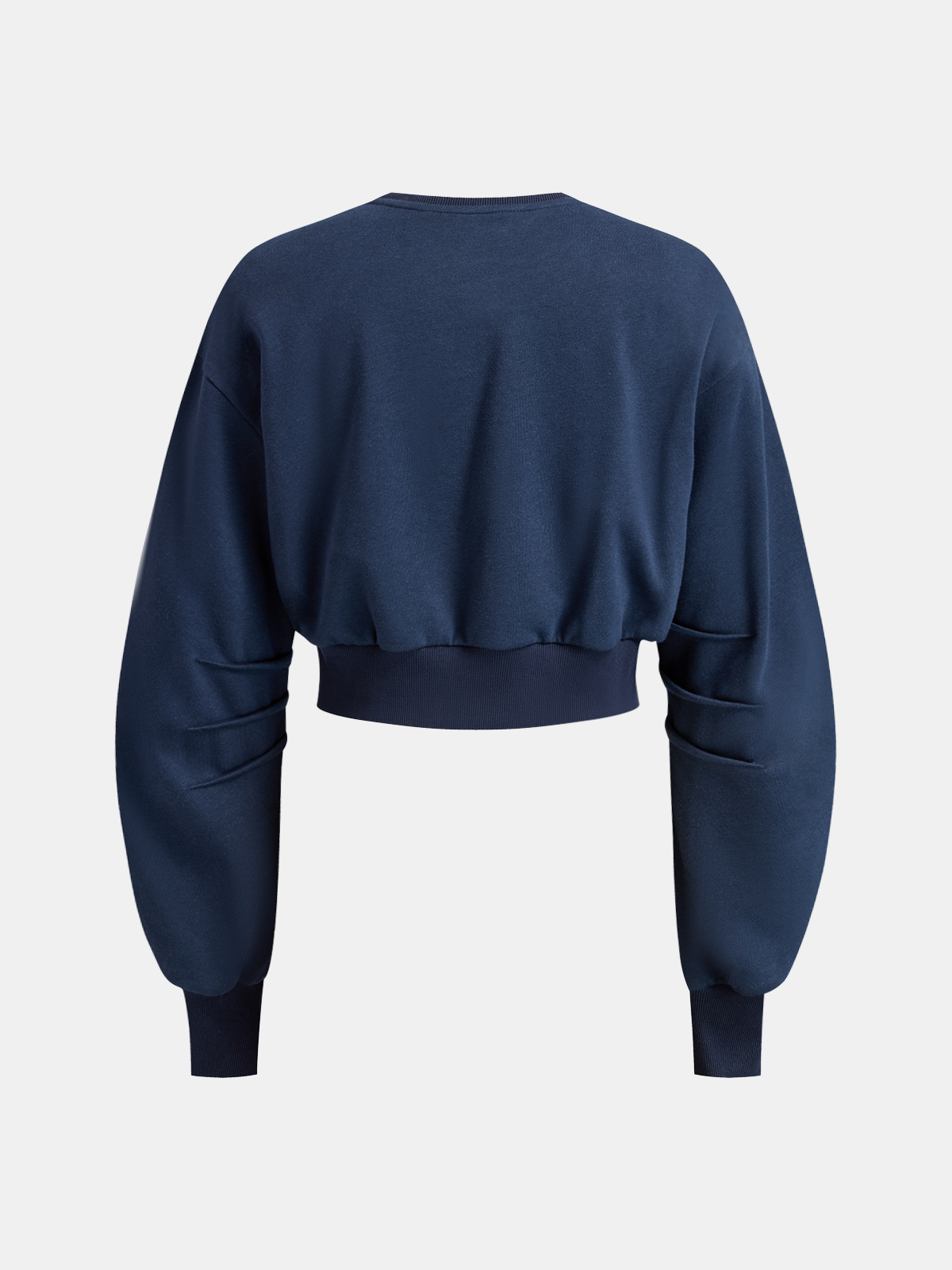 Ruched Cropped Balloon-Sleeve Sweatshirt