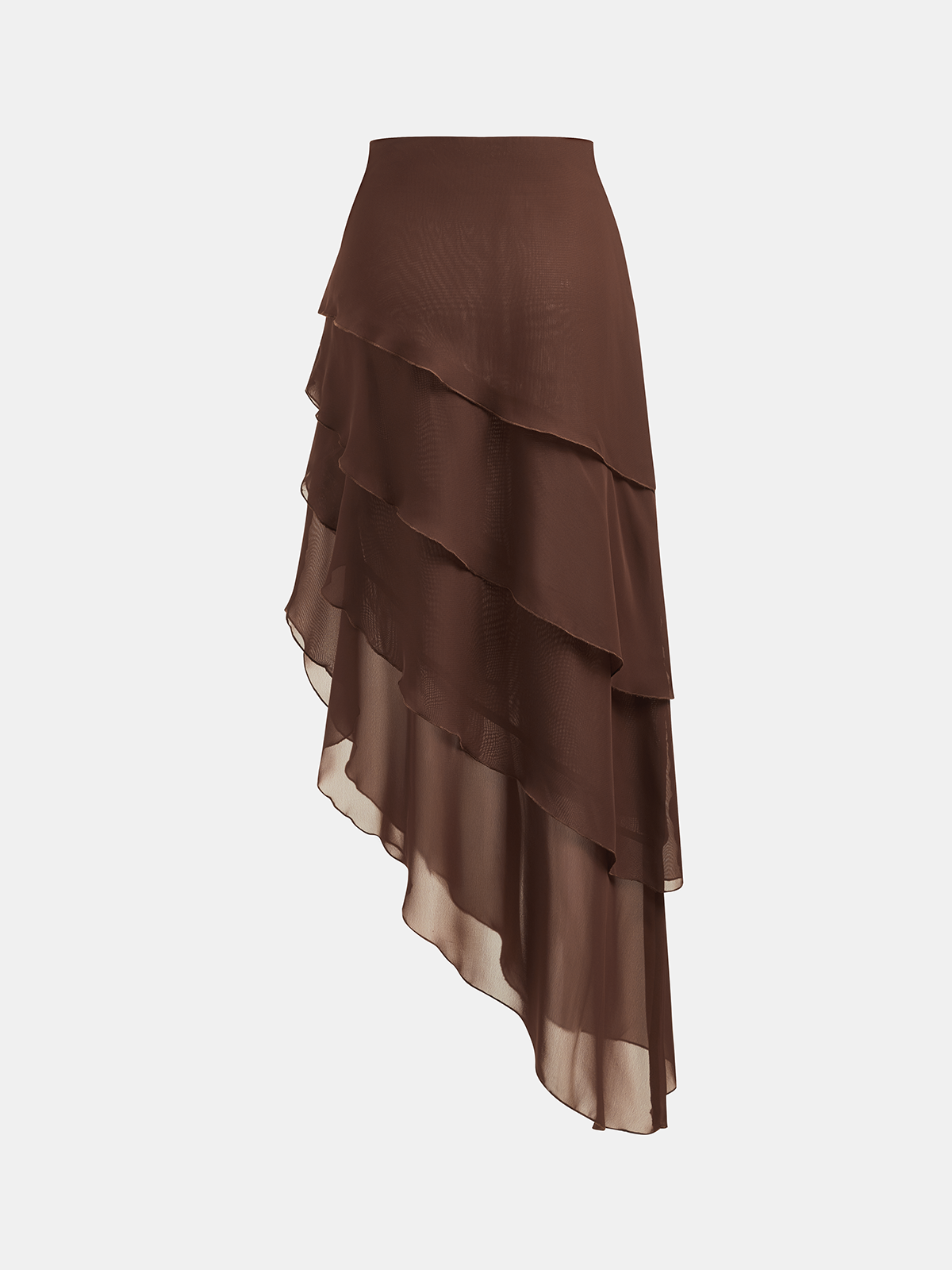 asymmetric,bottoms,brown,chiffon,clothing,coll:bottoms,coll:skirts,coll:vacation,coll:weekend_getaway,date,feminine,in_six_month,invisible zipper,low waist,maxi,no,non-stretch,not_low_sales,oa260109009,regular fit,ruffle,skirts,thin,vacation,women