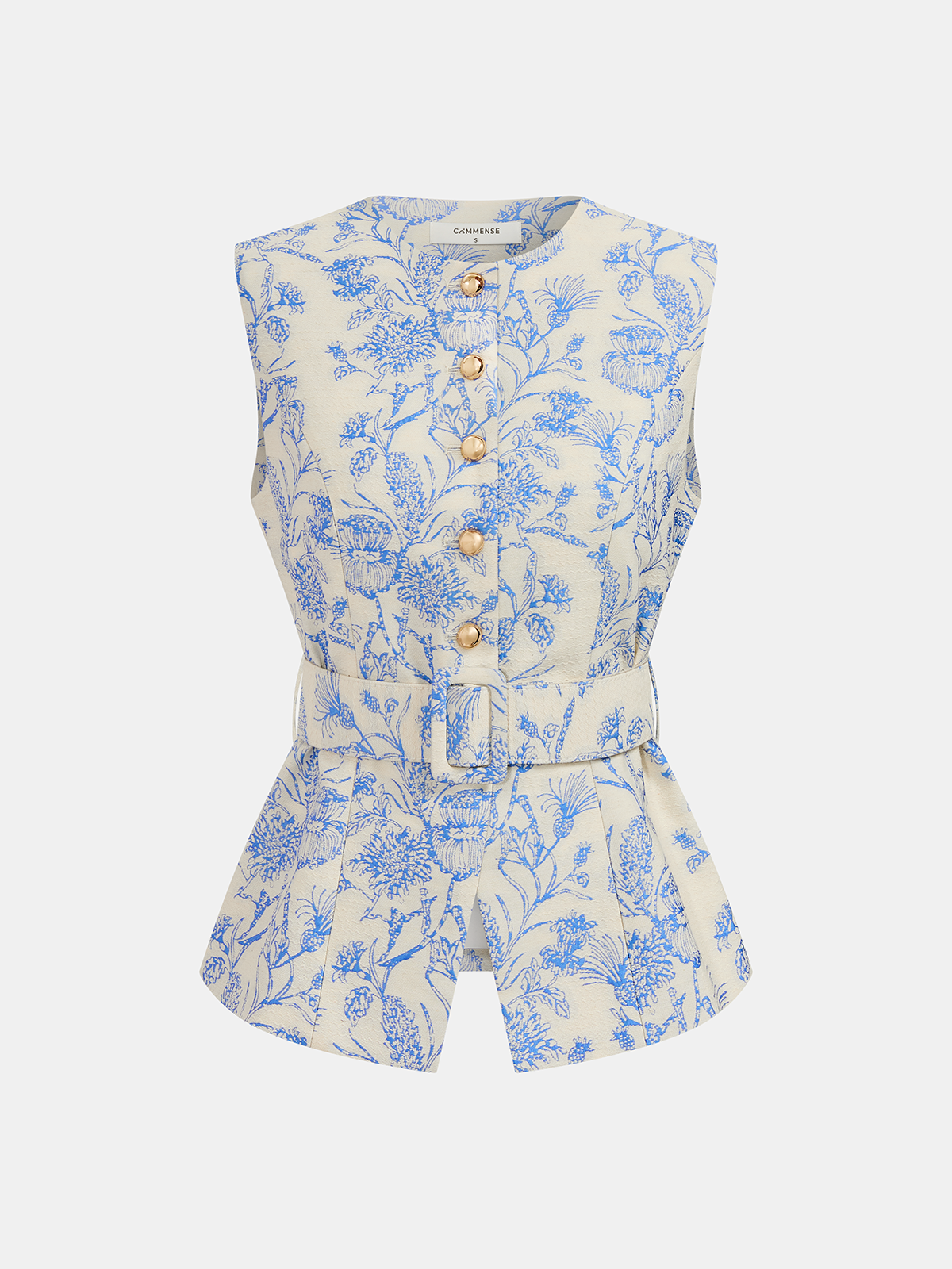 belted,blue,clothing,coll:floral_gradient,coll:matching_sets,coll:shorts,coll:vests,corpcore,date,feminine,floral print,in_six_month,metal detail,non-stretch,not_low_sales,oa260106029,regular,regular fit,sets,short sets,women,woven fabric