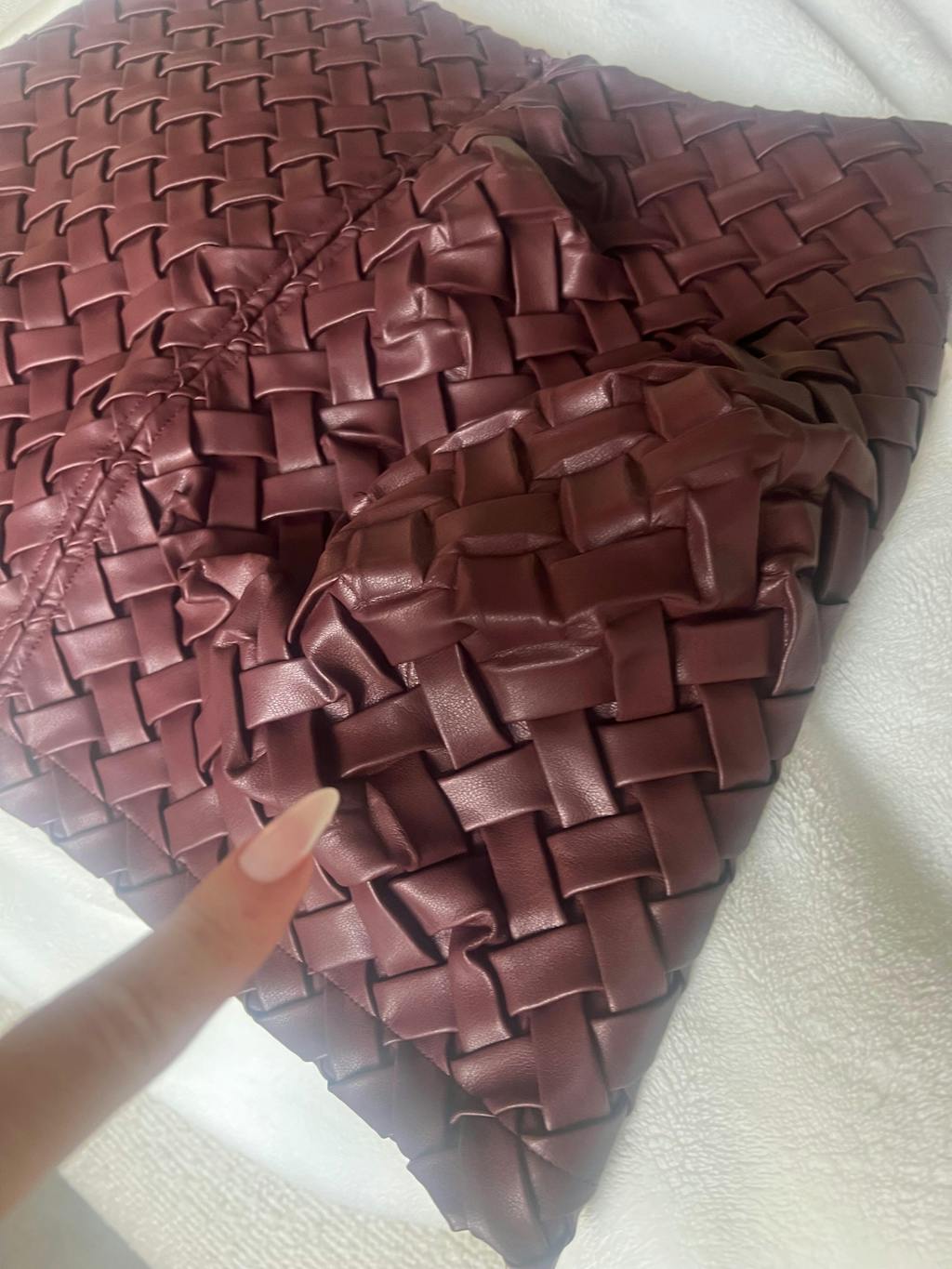 La minifalda es preciosa. Pero por un lado, hay que decir que es súper corta. Por otro lado, aconsejo comprar una talla más a la habitual para que quede floja, el tejido no ceda y así, el entrelazado no se desfigure. De lo contrario, por zonas perderá la forma mientras la usas.