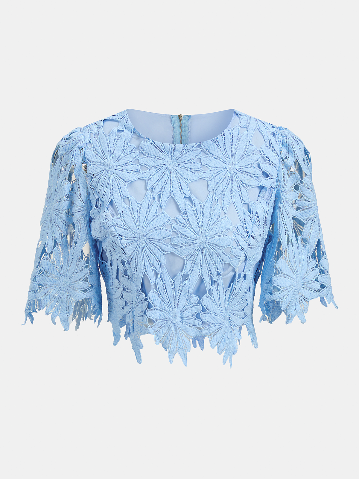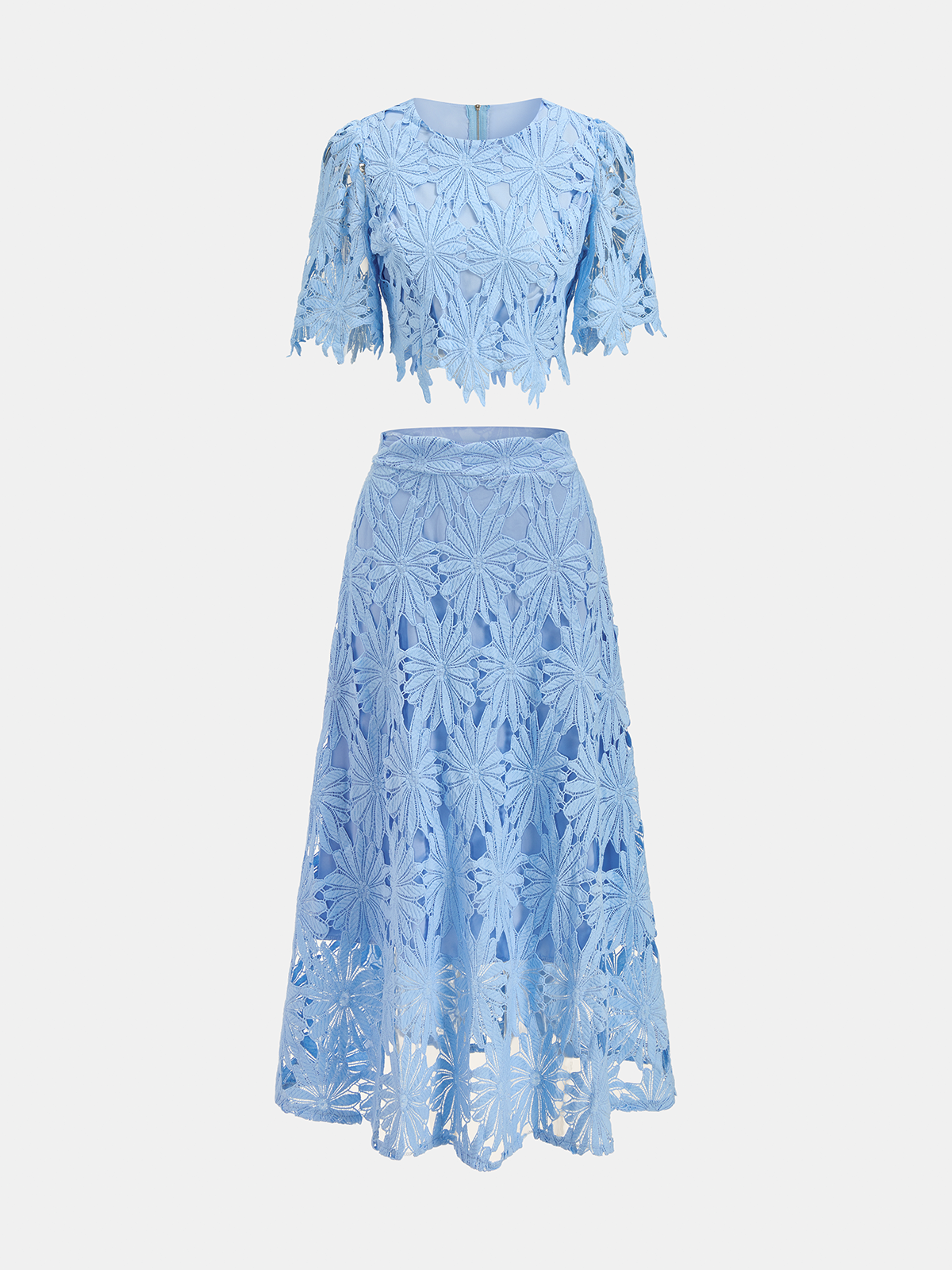 blue,clothing,coll:matching_sets,coll:skirts,coll:vacation,coll:weekend_getaway,crew neck,crop top,date,eyelet embroidery,feminine,in_six_month,lace,maxi,non-stretch,not_low_sales,oa260316011,regular,regular fit,sets,short sleeve,skirt sets,summer hues,umbrella hem,vacation,women,woven fabric