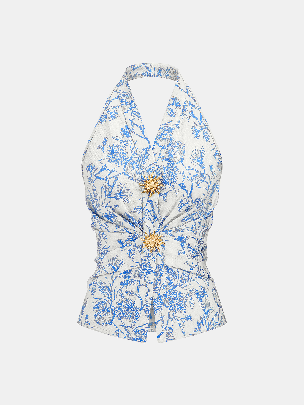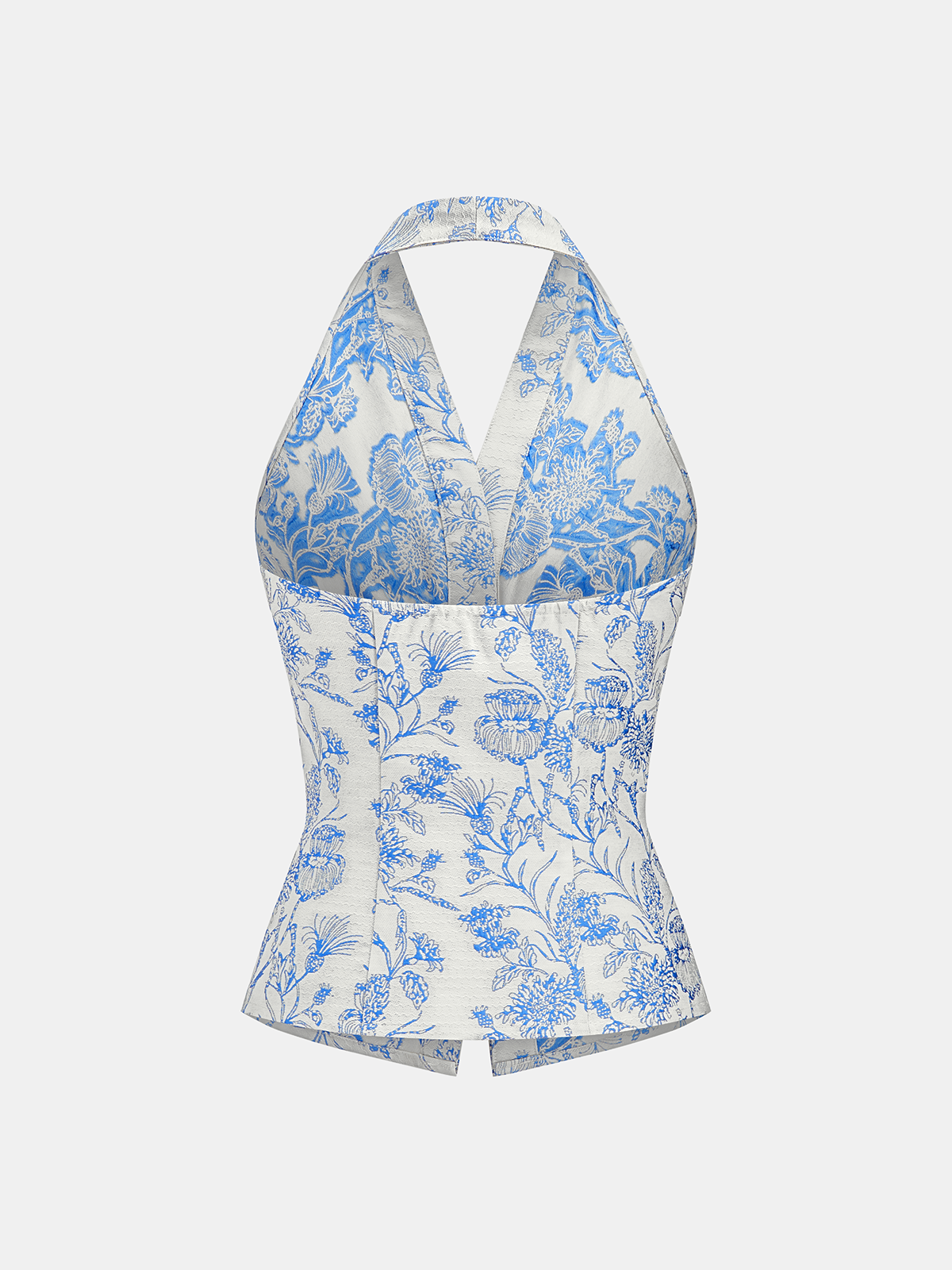 blue,clothing,coll:blouses_shirts,coll:floral_gradient,coll:tops,coll:vacation,coll:weekend_getaway,date,floral print,in_six_month,invisible zipper,metal detail,minegence,no,non-stretch,not_low_sales,oa260205012,regular,shirts,sleeveless,slim fit,ss pattern,tops,v-neck,vacation,women,woven fabric