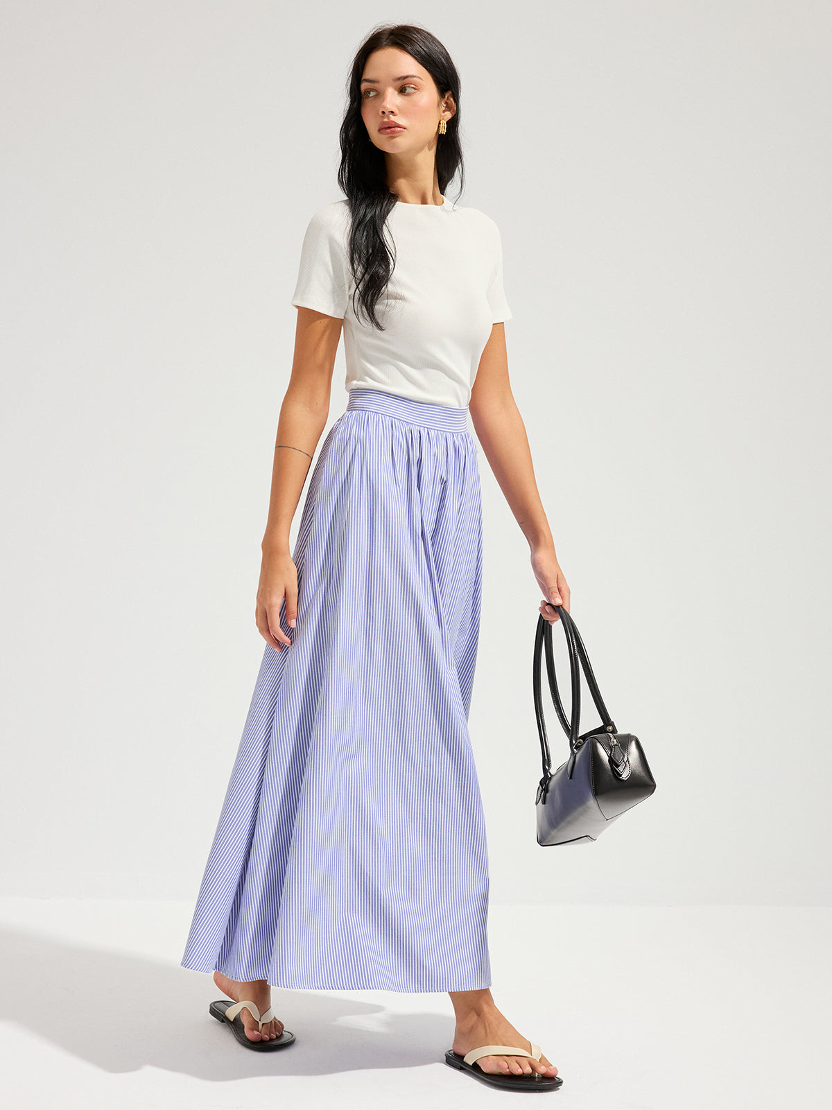 Oversized Striped Mid Waist Maxi Skirt