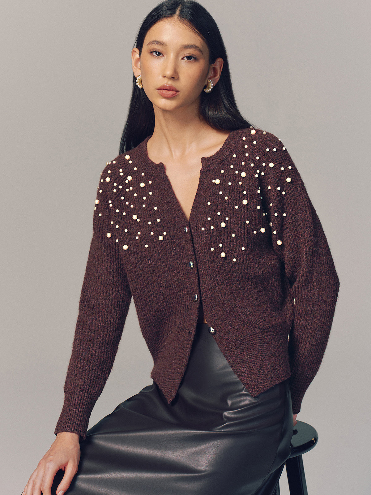 cardigans,clothing,coll:cardigans,coll:knitwear,coll:sweaters_cardigans,coll:tops,coll:trending,corpcore,dark brown,date,fall,feminine,in_six_month,knit,medium stretch,metal detail,not_low_sales,oa251017129,photo_model,regular,regular fit,spring,sweaters & cardigans,winter,women