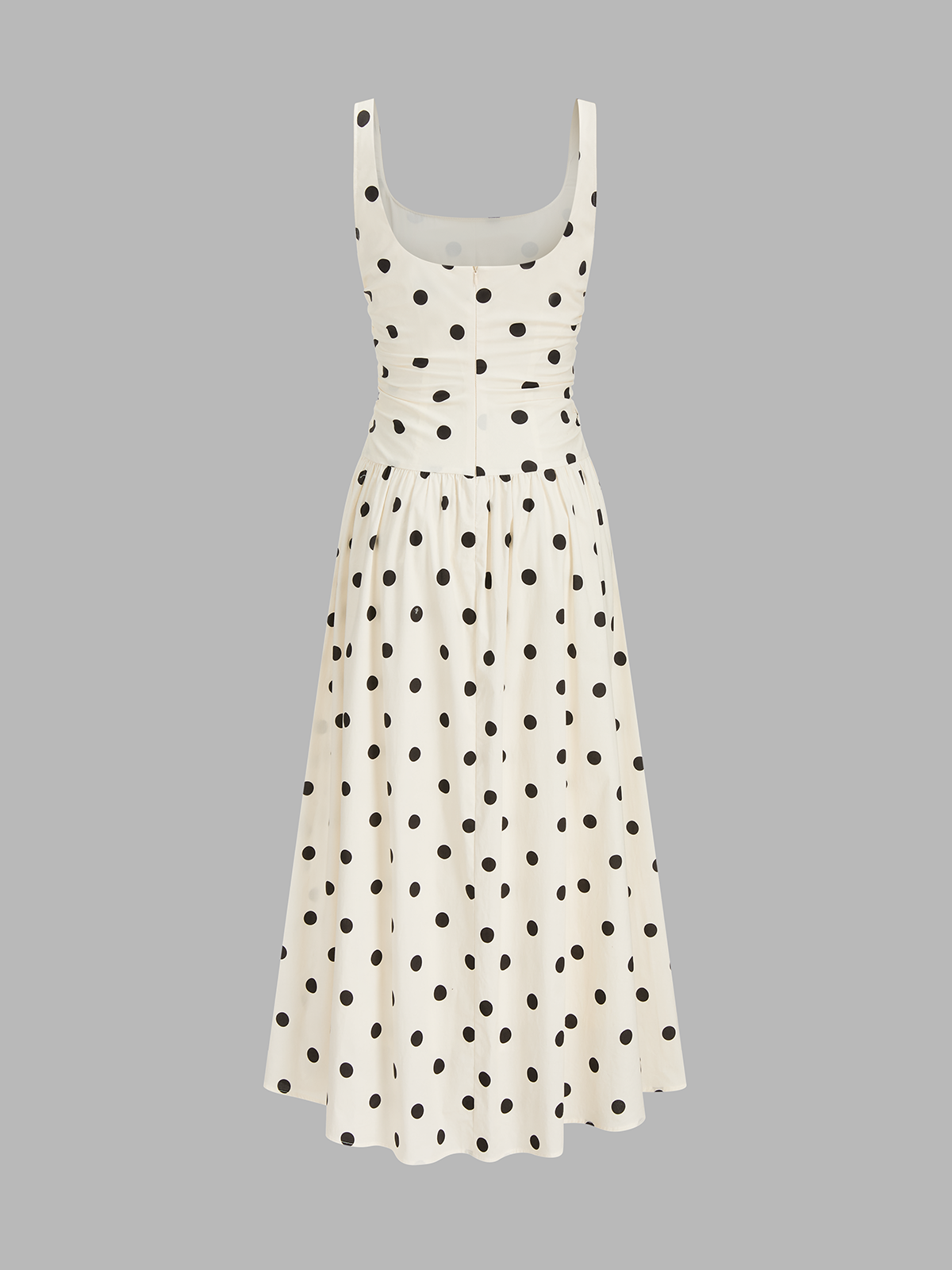 clothing,coll:dresses,coll:linen_cotton,coll:vacation,coll:weekend_getaway,cotton blends,date,dresses,feminine,in_six_month,invisible zipper,low cut,low waist line,maxi,no,non-stretch,not_low_sales,oa260305073,off-white,polka dot,regular,regular fit,ruched,sleeveless,twisted romance,umbrella hem,vacation,women