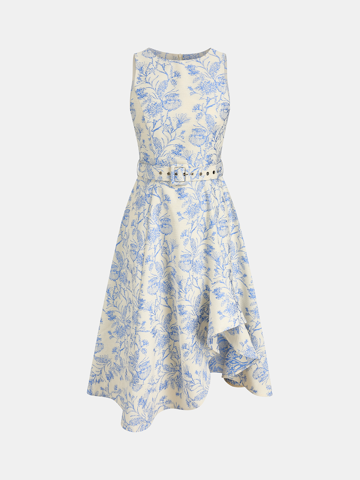 asymmetric,belted,blue,clothing,coll:dresses,coll:floral_gradient,coll:vacation,coll:weekend_getaway,crew neck,date,dresses,feminine,floral print,in_six_month,invisible zipper,midi,no,non-stretch,not_low_sales,oa251209004,regular,regular fit,sleeveless,vacation,women,woven fabric