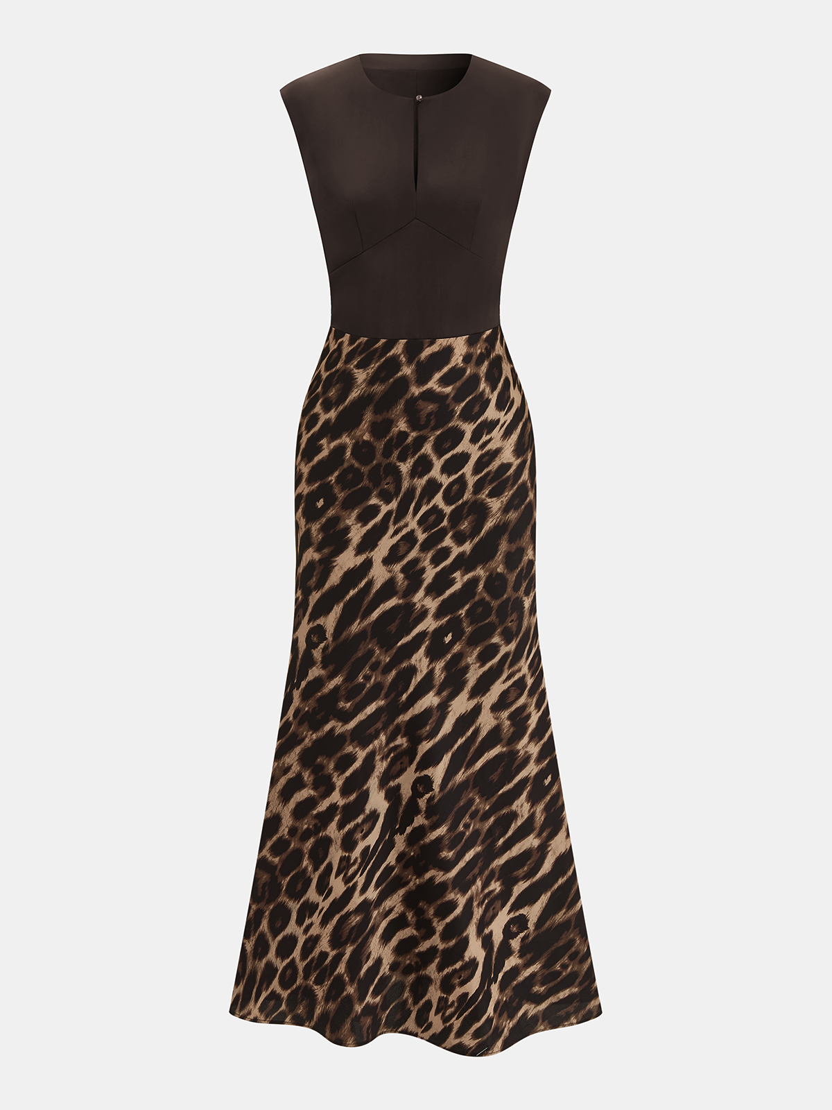 animal print,clothing,coll:dresses,coll:night_glam,crew neck,dark brown,date,dresses,in_six_month,invisible zipper,maxi,minegence,no,non-stretch,not_low_sales,oa251129029,party,patchwork,regular,regular fit,satin,sleeveless,women