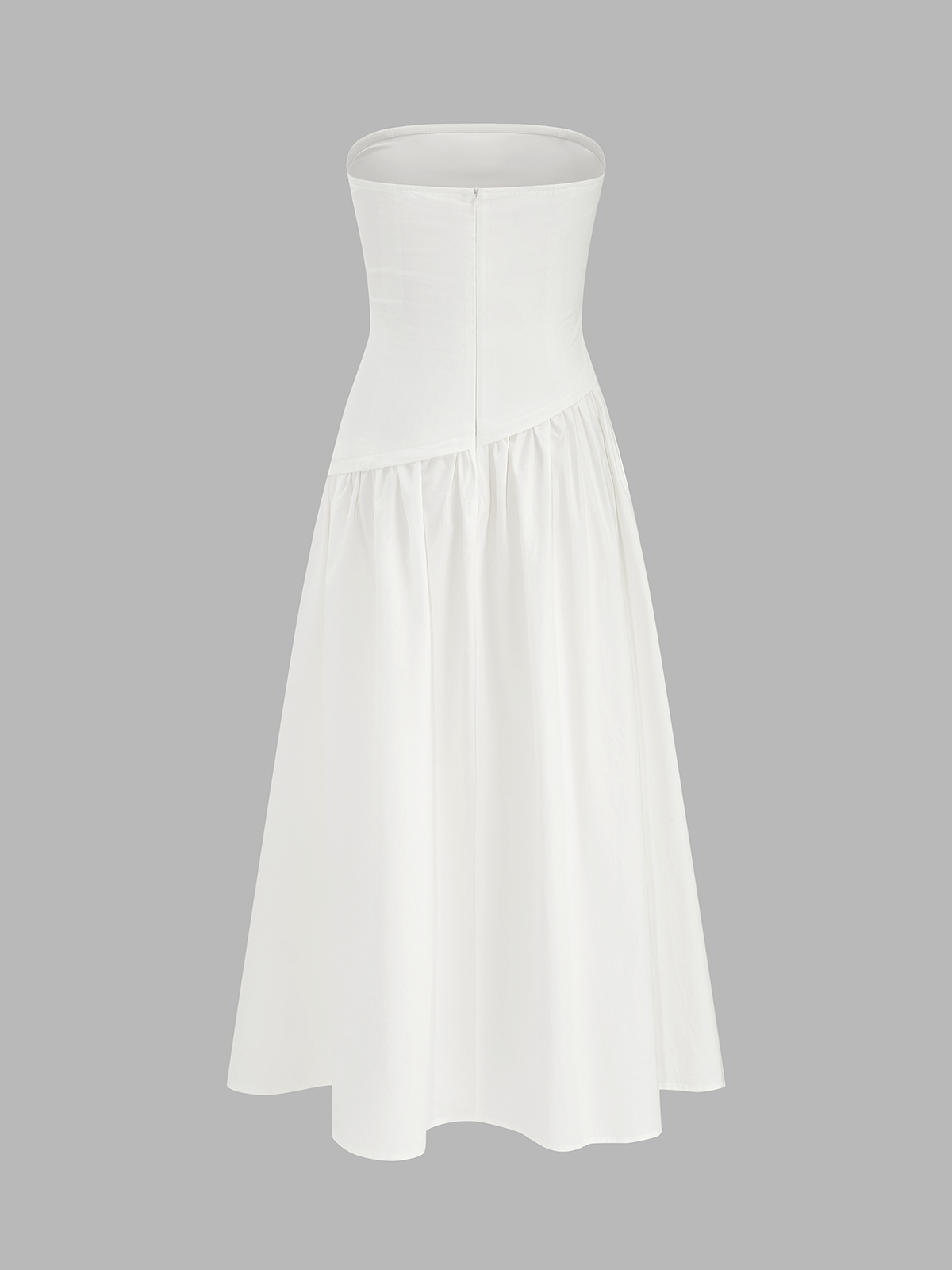 asymmetric,clothing,coll:dresses,coll:vacation,coll:weekend_getaway,collarless,date,dresses,feminine,in_six_month,invisible zipper,low waist line,maxi,no,not_low_sales,oa260305074,photo_ai,regular,regular fit,ruched,sleeveless,slight stretch,twisted romance,umbrella hem,vacation,white,women,woven fabric