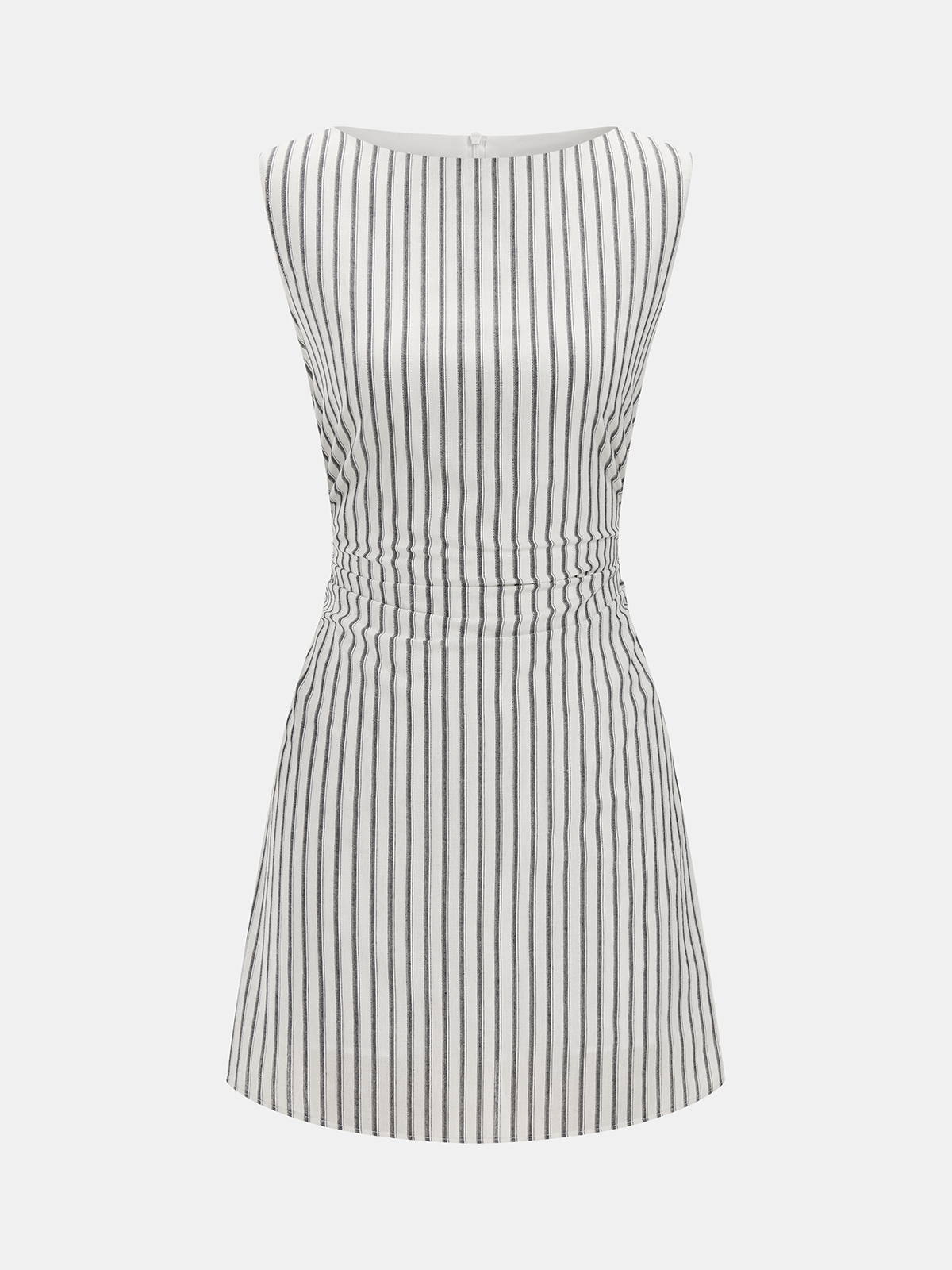 blackandwhite,casual,clothing,coll:dresses,coll:linen_cotton,coll:short,cotton,date,dresses,in_six_month,invisible zipper,minegence,mini,no,not_low_sales,oa260204026,photo_ai,pleated,regular,regular fit,stripe,women