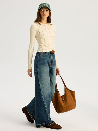 Low Rise Two Tone Ultra Wide Leg Jeans