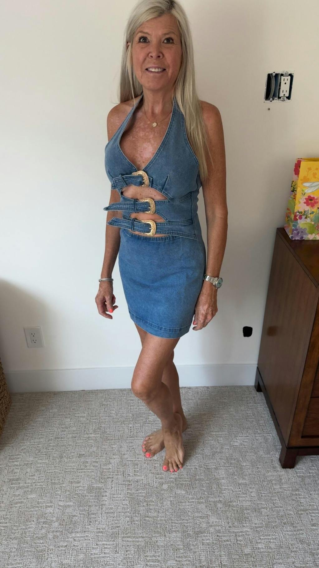 Halter Neck Buckle Detail Denim Dress
