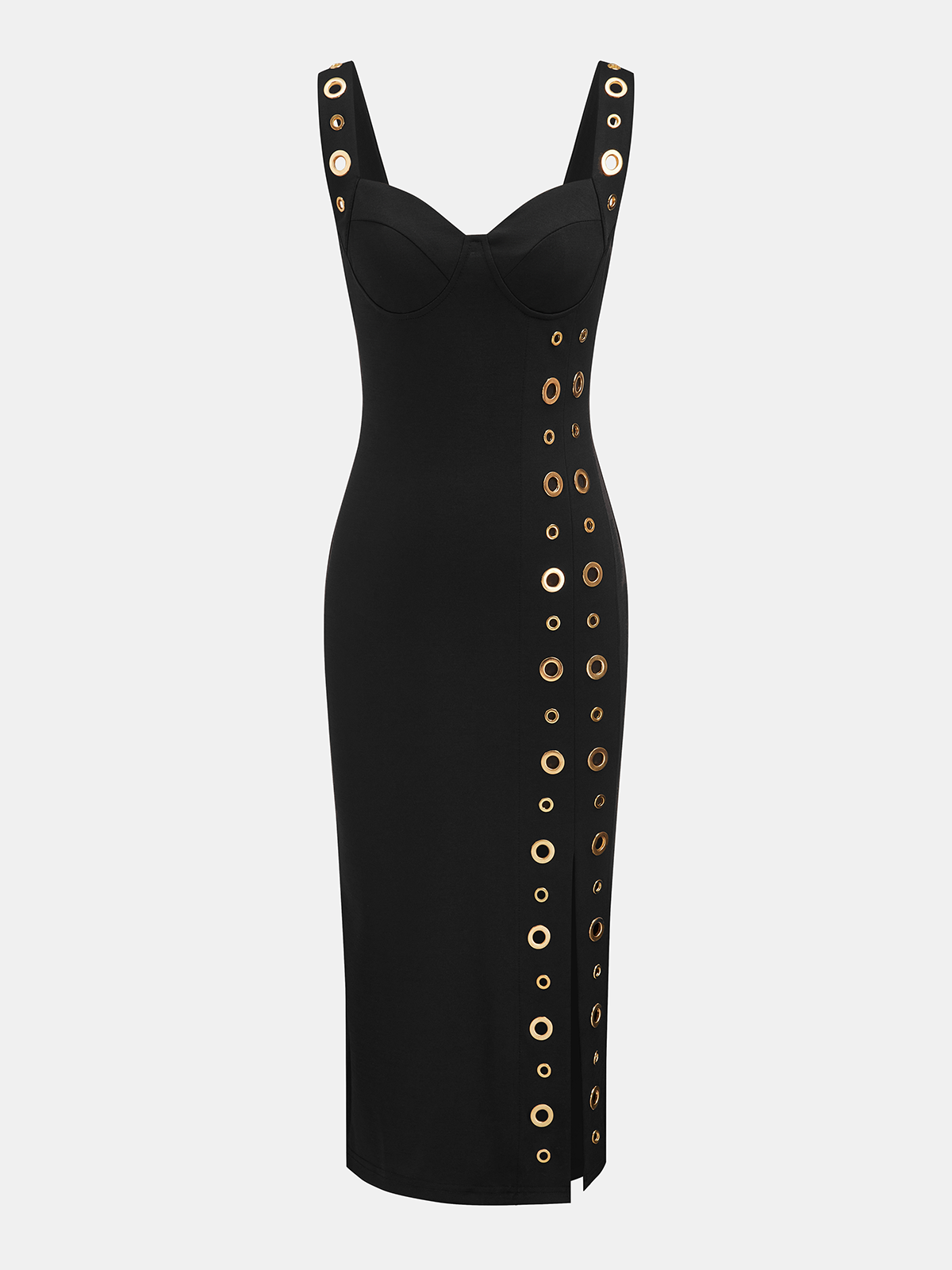 Rommet-Embellished Midi Dress with Side Slit