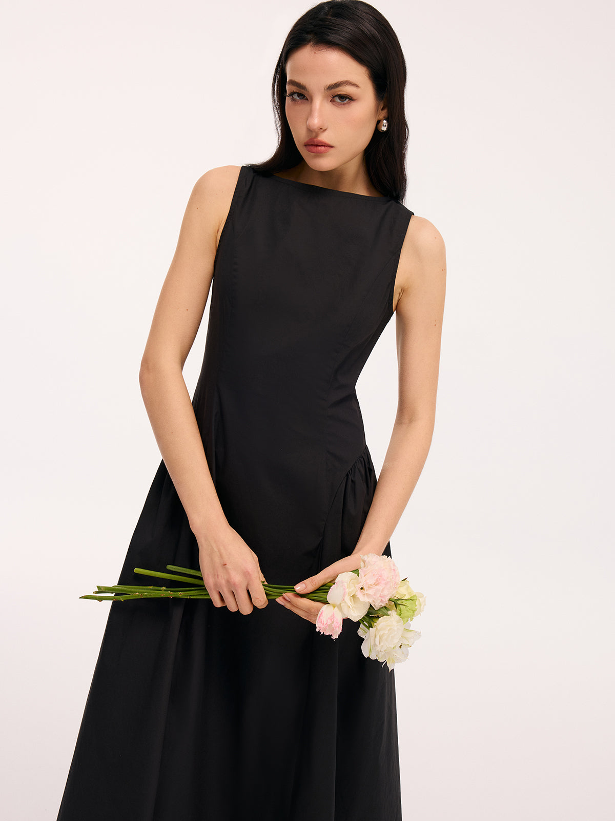Umbrella Hem Backless Cotton Sleeveless Maxi Dress