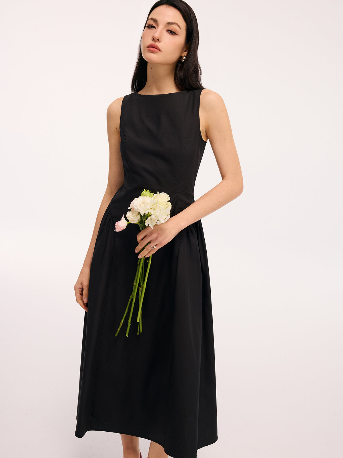 black,casual,clothing,coll:dresses,coll:linen_cotton,cotton,crew neck,date,dresses,feminine,in_six_month,maxi,mwt,no,non-stretch,not_low_sales,oa251204116,photo_model,regular,regular fit,ruched,season of love,serena-选品,sleeveless,umbrella hem,women,zyq