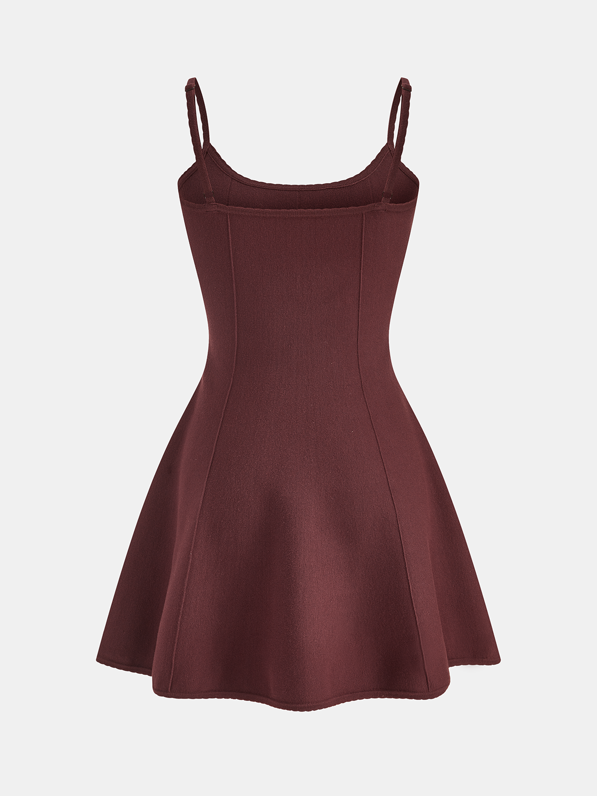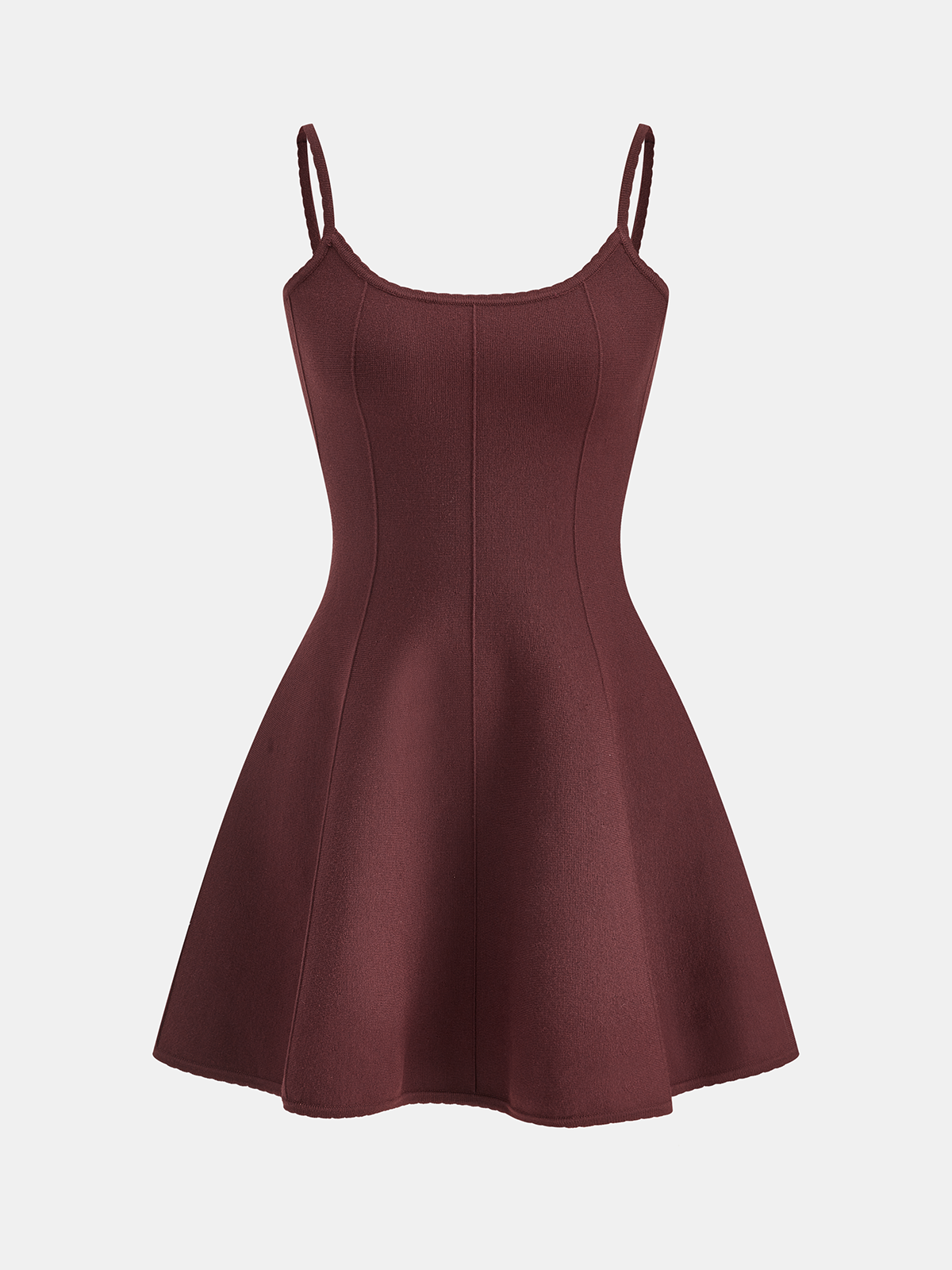 adjustable straps,basic - fabric,burgundy,casual,clothing,coll:dresses,coll:knitwear,coll:trending,collarless,date,dresses,high stretch,in_six_month,knit,minegence,no,not_low_sales,oa251114019,photo_ai,regular,regular fit,short,sleeveless,summer hues,umbrella hem,women