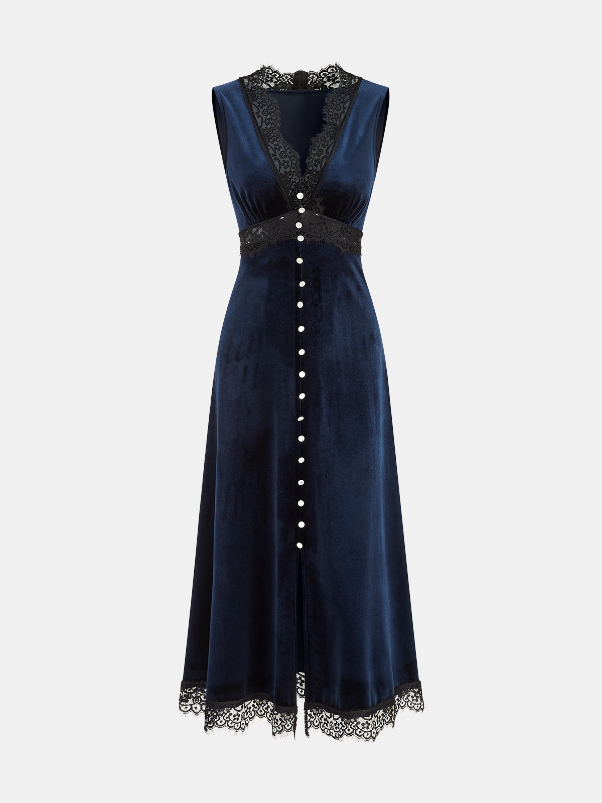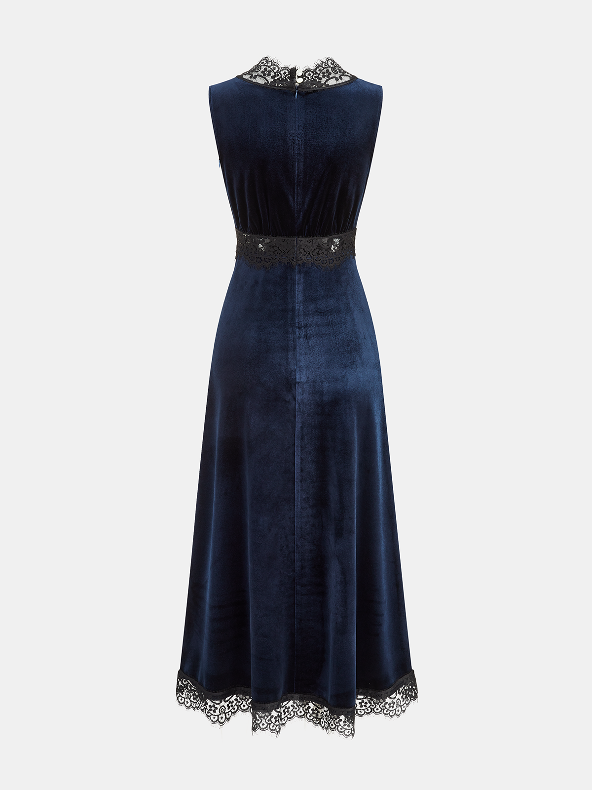 clothing,coll:dresses,coll:night_glam,coll:vintage_fabrics,date,dresses,feminine,in_six_month,invisible zipper,lace,medium stretch,midi,navy,no,not_low_sales,oa251011059,party,photo_ai,regular,regular fit,serena-选品,sleeveless,v-neck,velvet,winter hues,women,zyq
