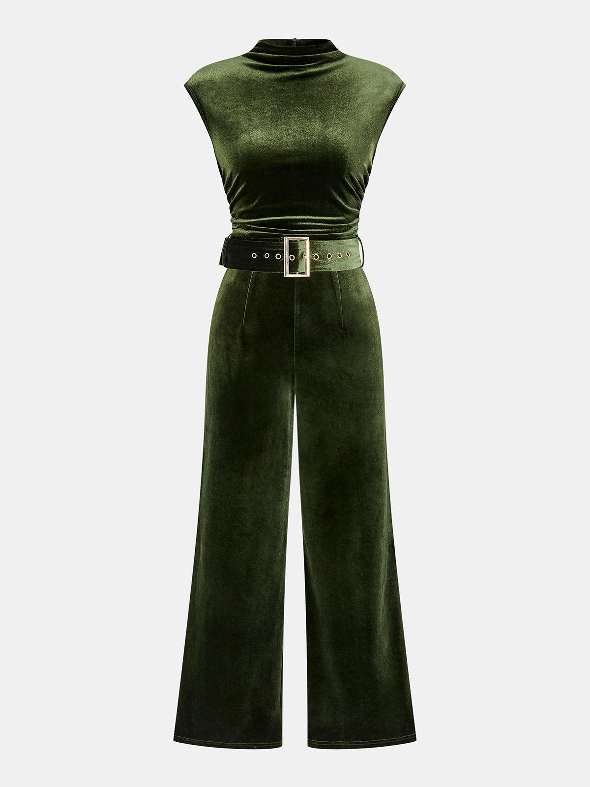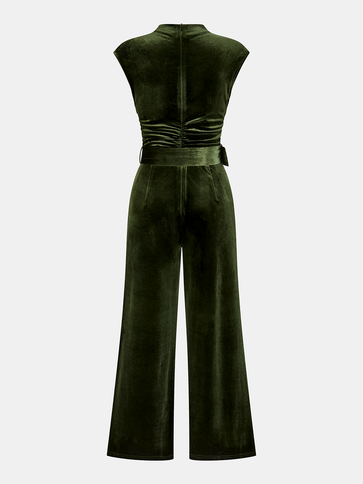 Velvet Sleeveless Belted Wide-Leg Jumpsuit