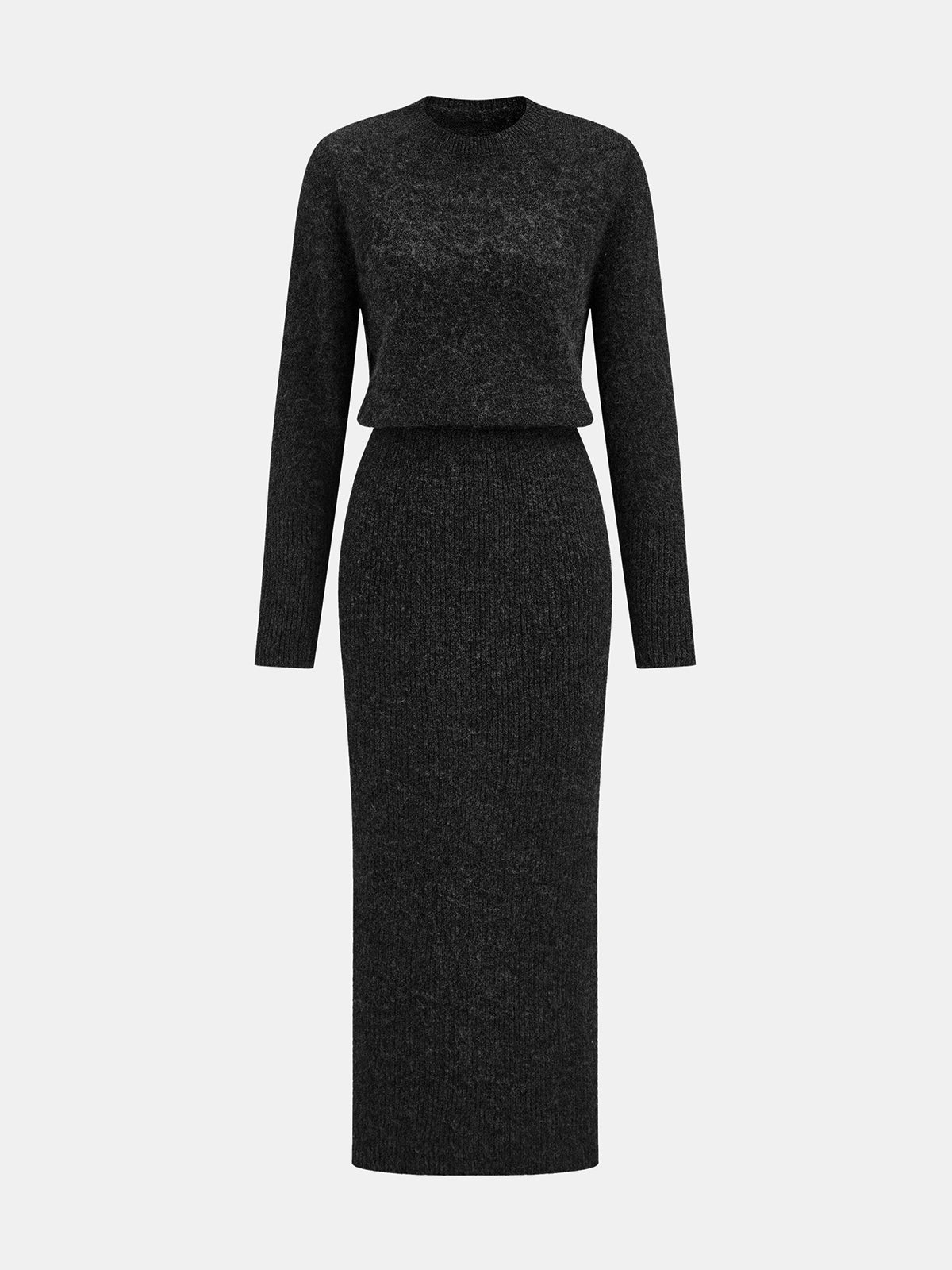 a-none,black,casual,clothing,coll:dresses,coll:knitwear,coll:sweater_dresses,coll:trending,corpcore,fall,grey,in_six_month,knit,medium stretch,midi,minegence,no,not_low_sales,oa250814018,regular,regular fit,serena-选品,sweater dresses,sweaters & cardigans,winter,women,zyq