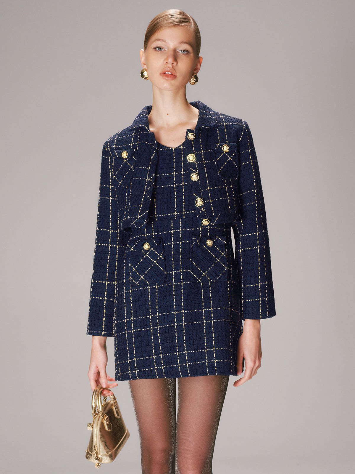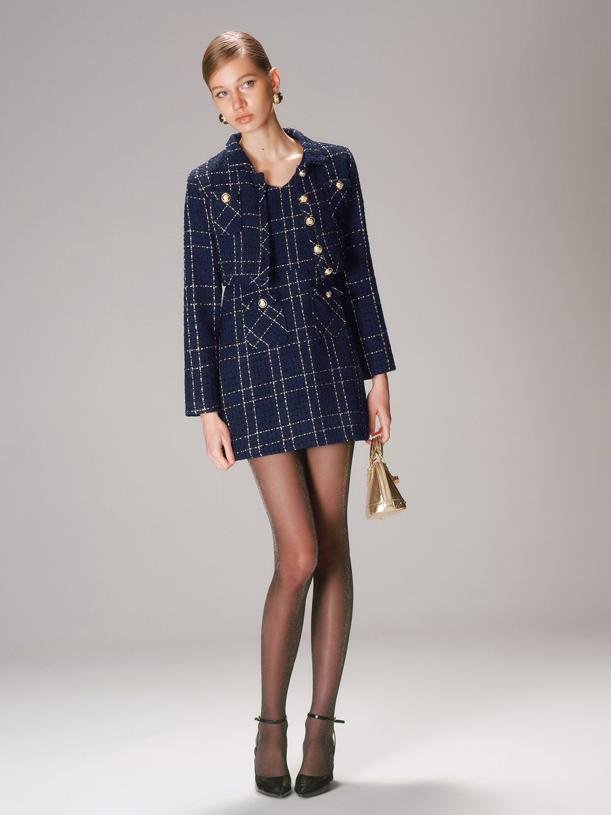 2‌5 christmas,a-none,cici select,clothing,coll-2025-11-14,coll:jackets,coll:matching_sets,coll:plaids_polka,coll:skirts,coll:vintage_fabrics,fall,feminine,festive moods,in_six_month,invisible zipper,metal detail,navy,non-stretch,not_low_sales,oa251008033,photo_model,plaid,regular,regular fit,sets,skirt sets,spring,tweed,winter,winter hues,women