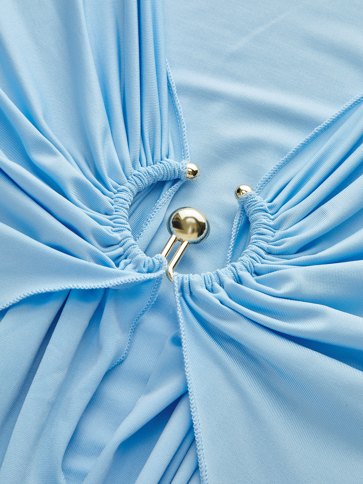 Metal Ring Draped Long Sleeve Maxi Dress