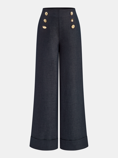 Asymmetrical Waistband Pleated Wide Leg Pants