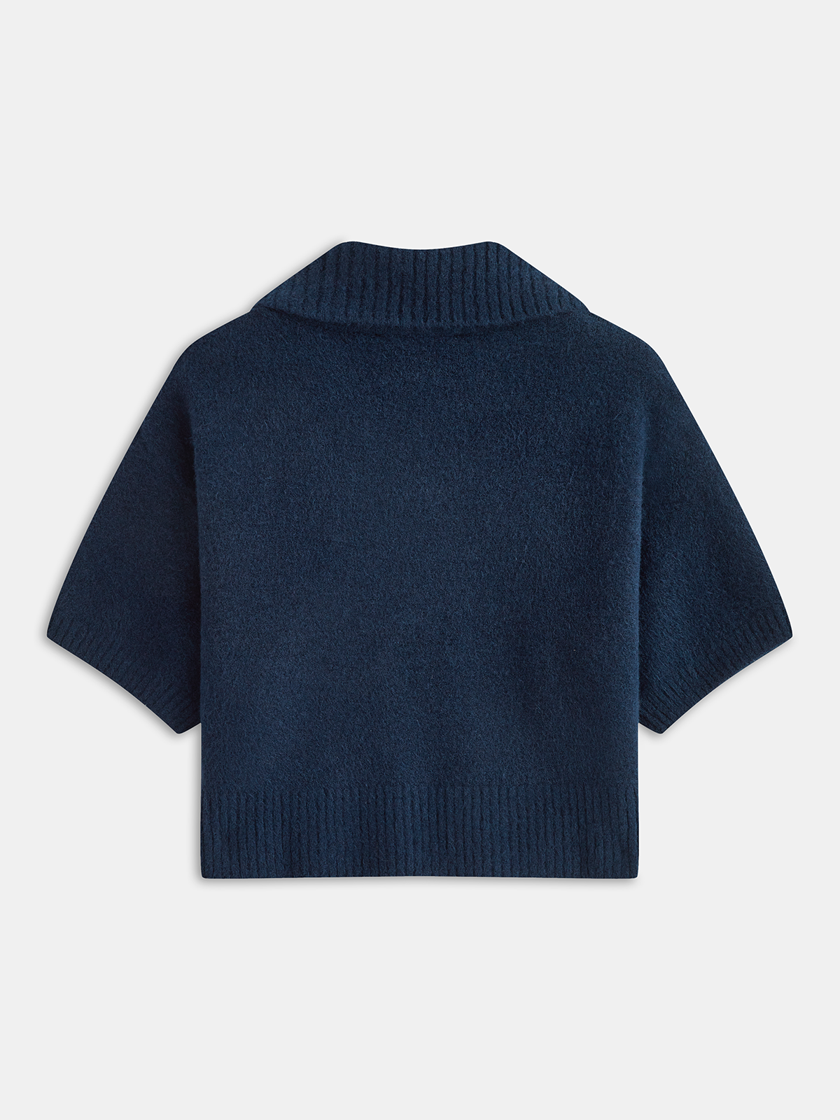 Contrast Pocket Polo-Collar Short-Sleeve Sweater
