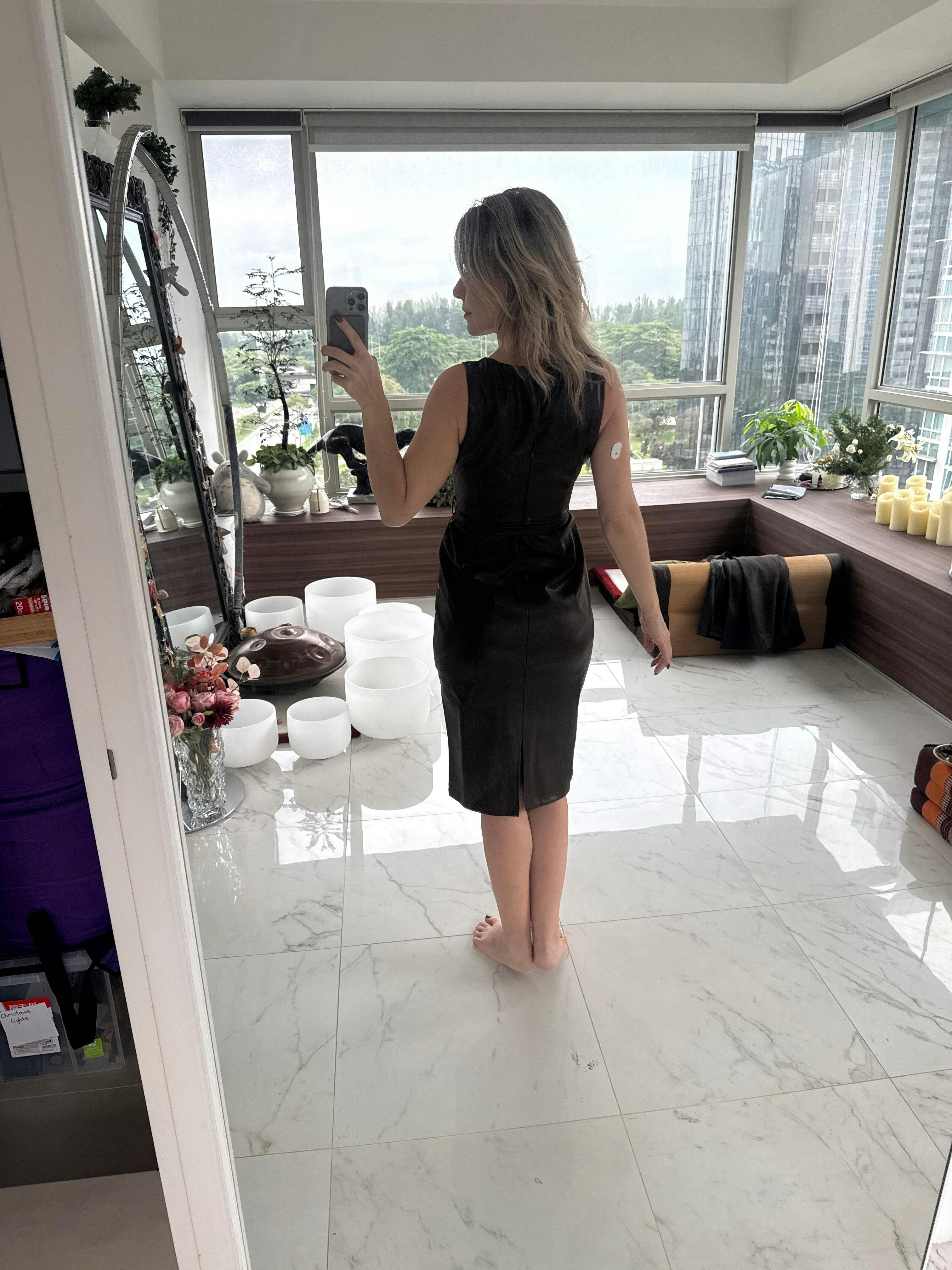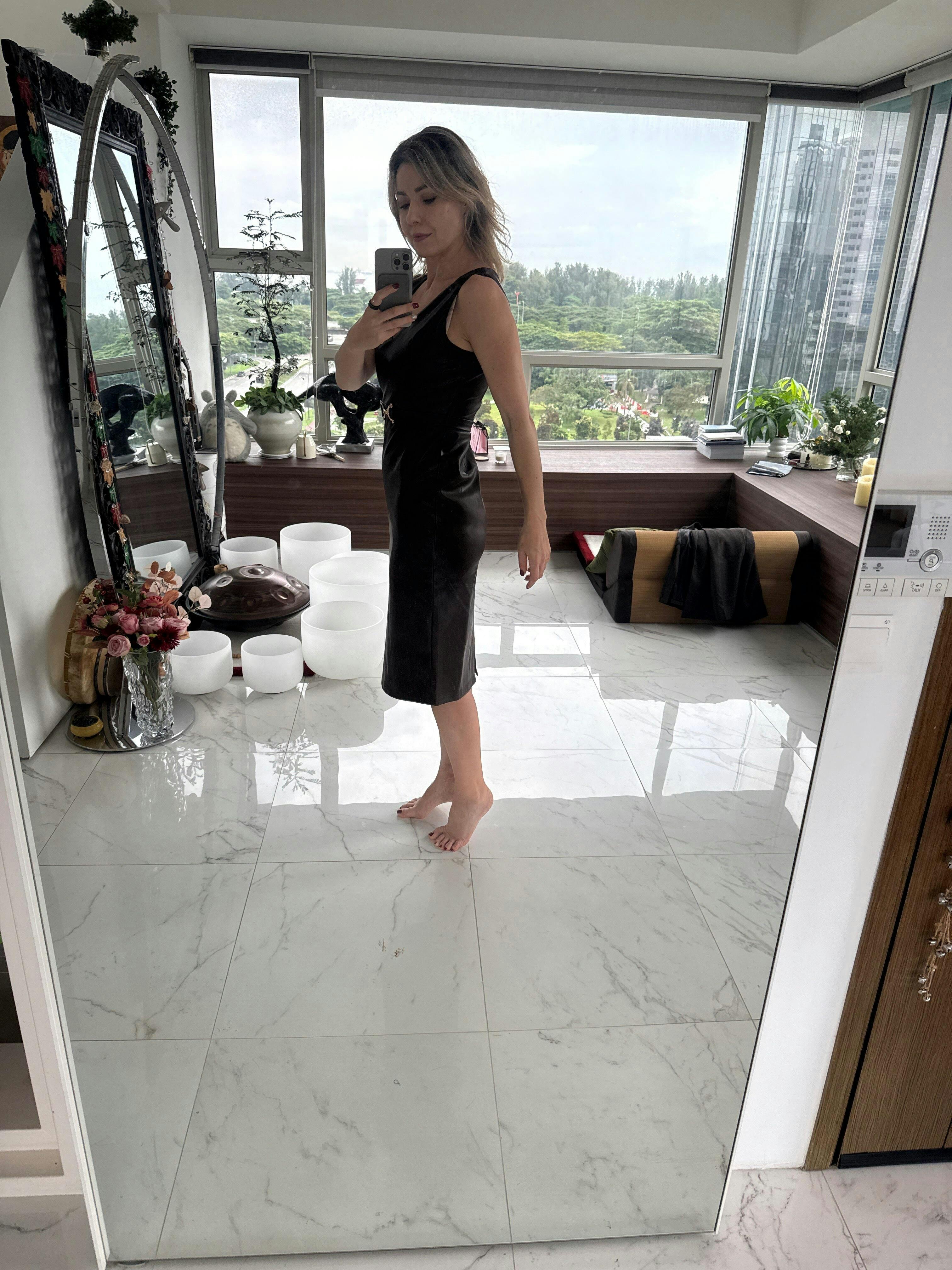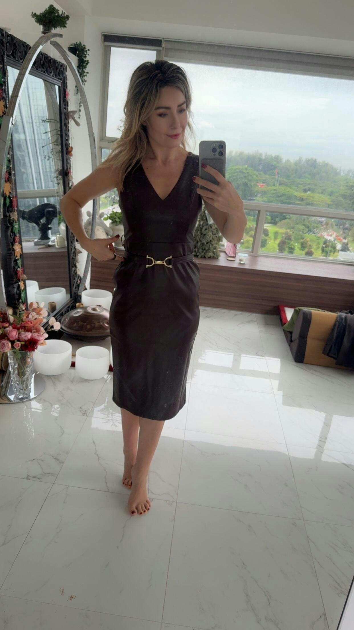 A very nice color, suitable for warm and cool pallets. A bit stretchy with nice back slit. HOWEVER! It is made for rectangular body shape with no waste line. There is a belt coming with the dress, but waste line if the dress and loops for the belt is way too high up creating “preggy” look. It’s look good in breast and hips area, but waist line is disaster. I ask alternation service, and they advice “due to fabric quality no fit in alternation can be done”. Sadly the dress is not accepted for the return either😭😔