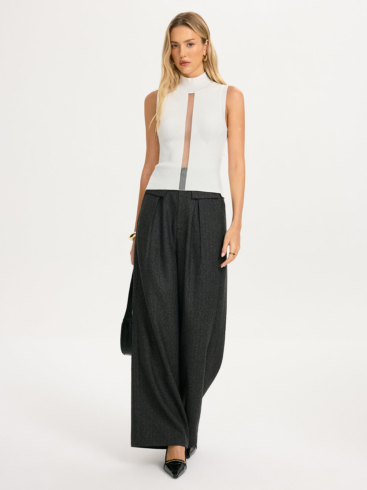Sheer Panel Sleeveless Mock Neck Knit Top