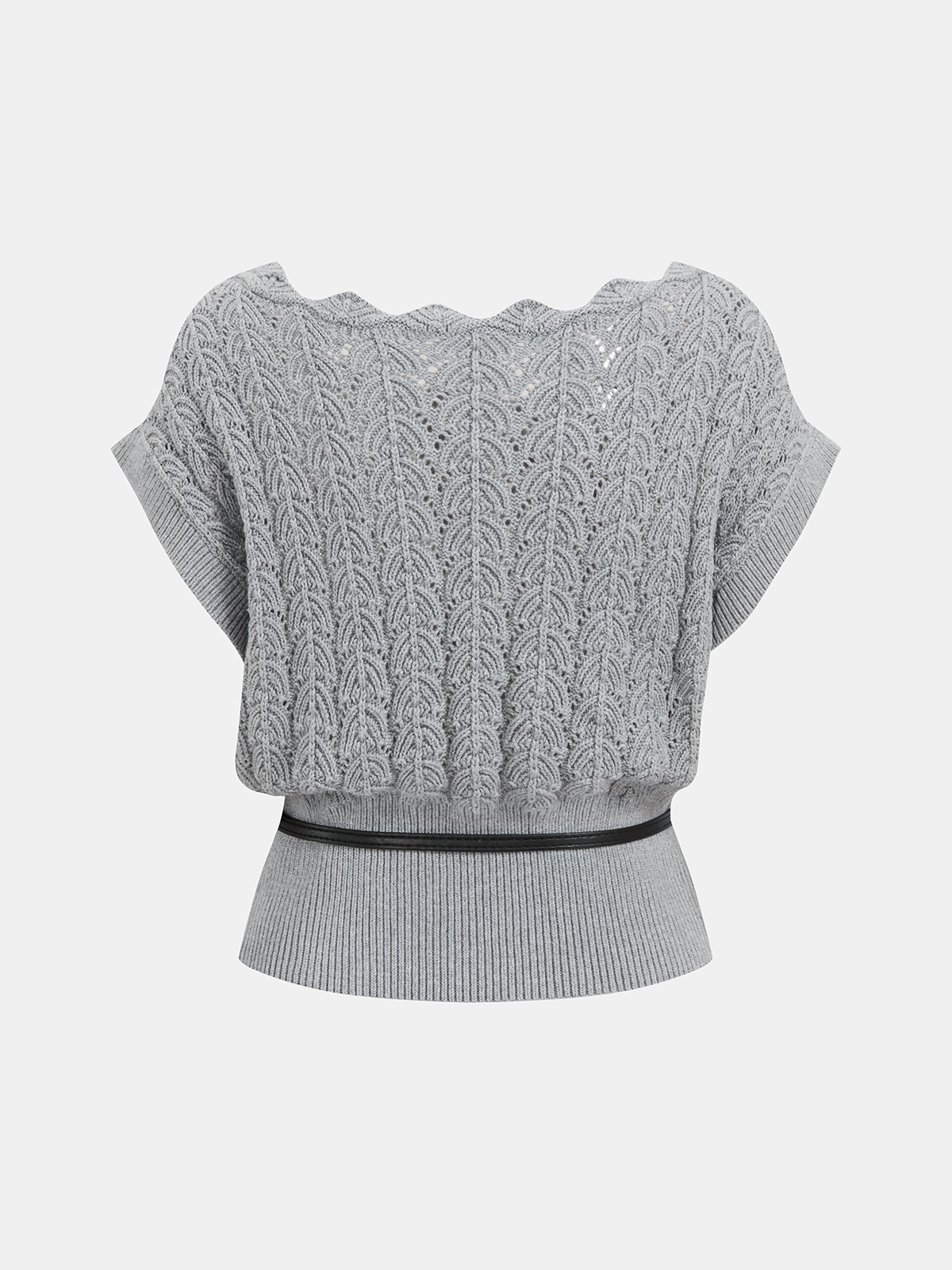 Scalloped Neck Belted Knit Top