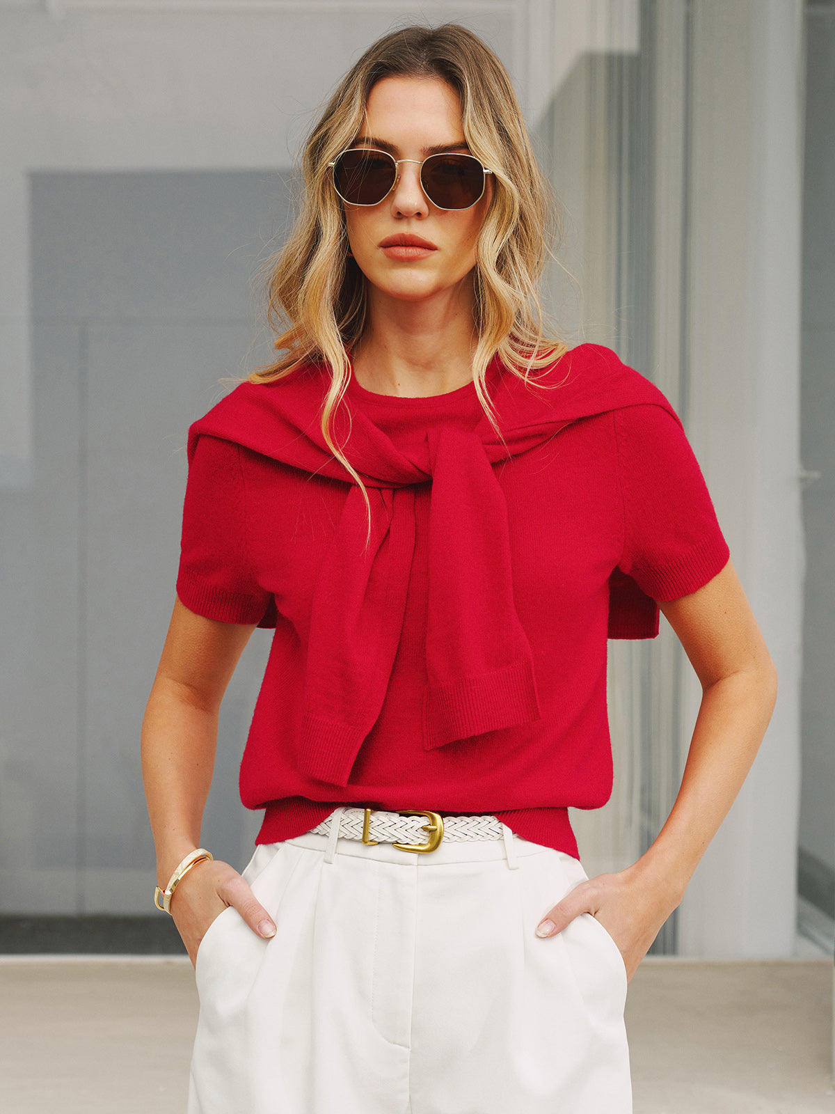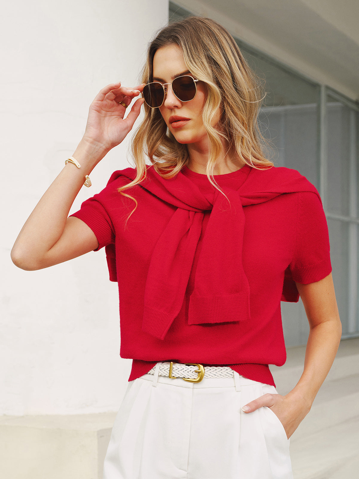 bloused waist,casual,clothing,coll:knitwear,coll:sweater_tops,coll:sweaters_cardigans,coll:tops,coll:trending,corpcore,in_six_month,knitwear,minegence,not_low_sales,oa251211066,off-shore collective,photo_model,red,regular,regular fit,slight stretch,summer hues,sweaters,women,woollen blend