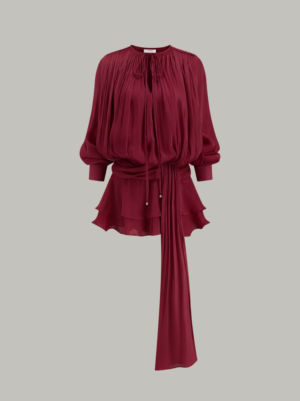Semi-Sheer Tiered Draped Tie-Waist Mini Dress