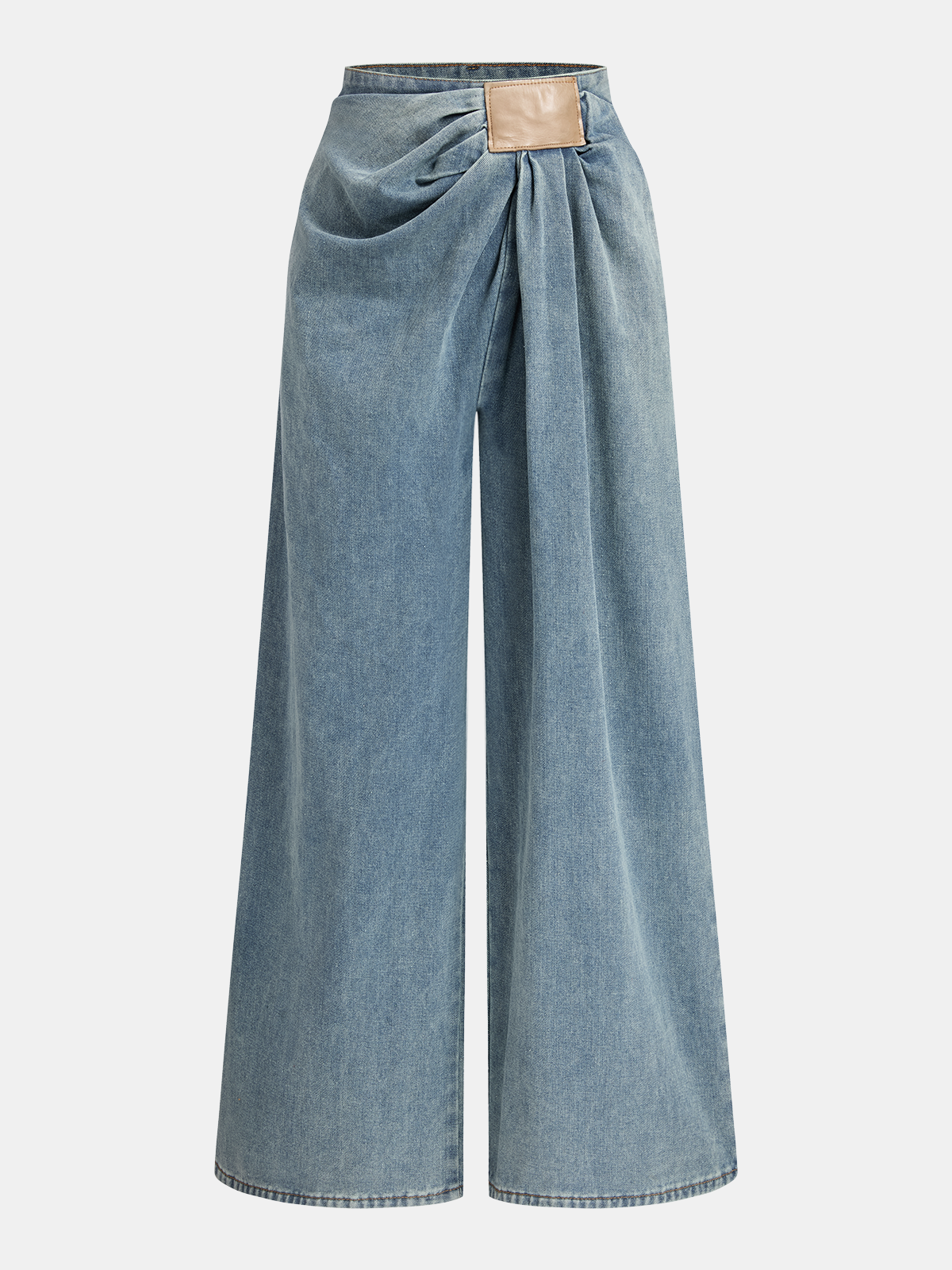Asymmetrical Ruched Denim Wide-Leg Pants