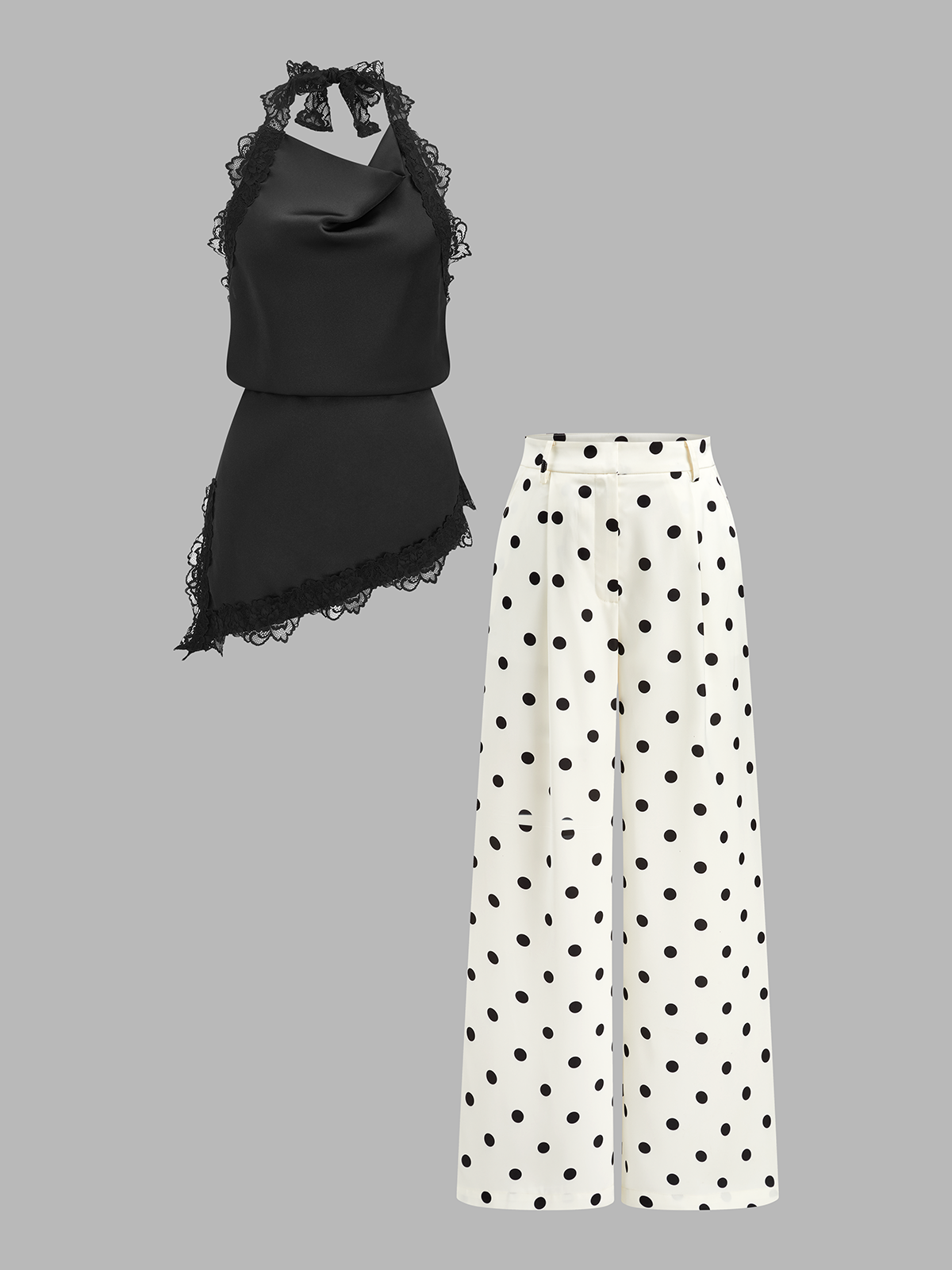 Lace Halter Top & Polka Dot Pants Set