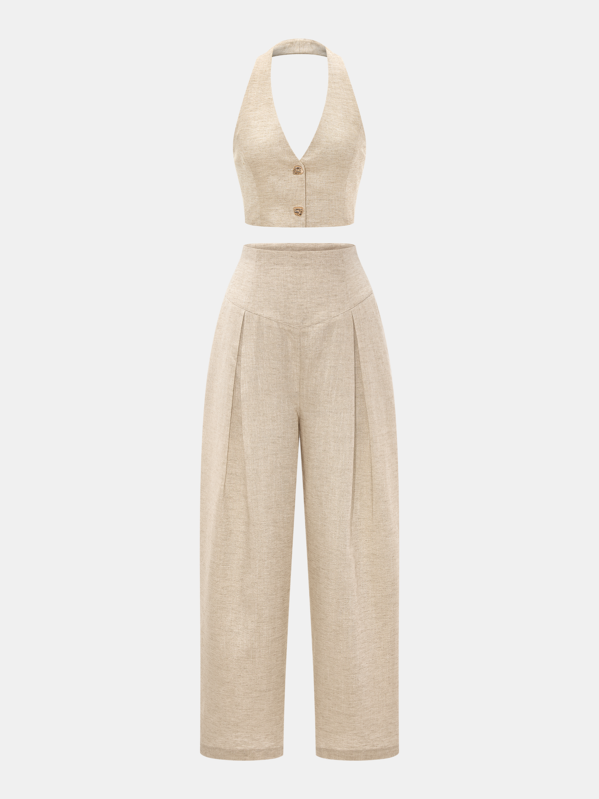 Linen Blend Halter Crop Top & Pants Set