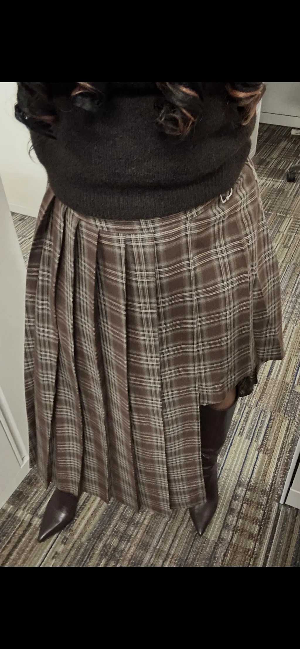 Plaid Asymmetric Pleated Maxi Skirt