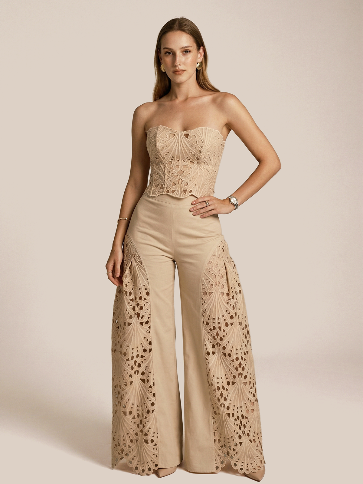 a-none,clothing,coll:bottoms,coll:matching_sets,coll:sheer_bare-back,coll:wide_leg,crochet,in_six_month,khaki,minegence,non-stretch,not_low_sales,oa260108025,pant sets,patchwork,photo_ai,regular,sets,sheer,slim fit,women,woven fabric